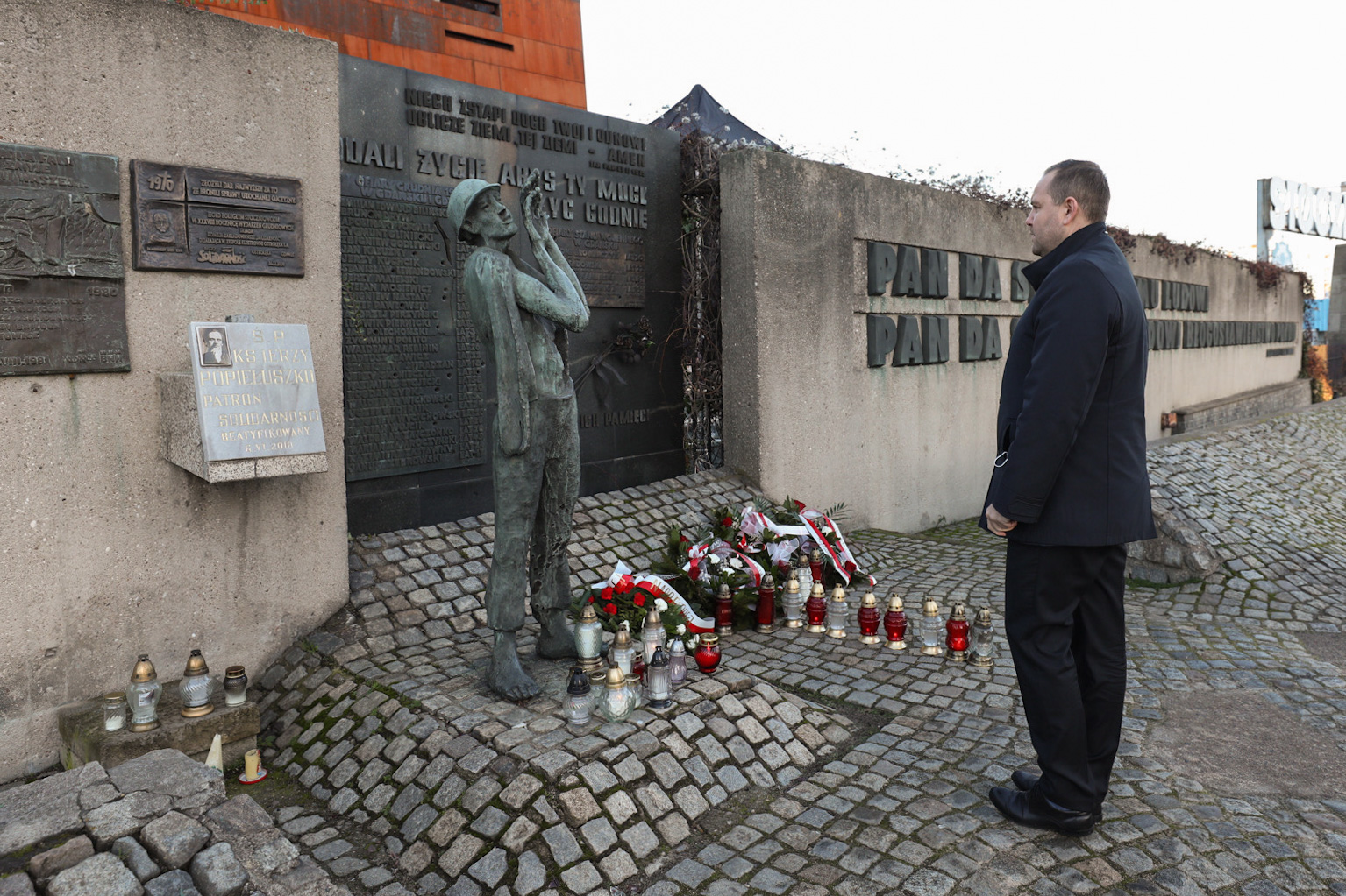 Prezes IPN dr Karol Nawrocki oddał hołd ofiarom masakry na Wybrzeżu. Fot. Mikołaj Bujak (IPN) -