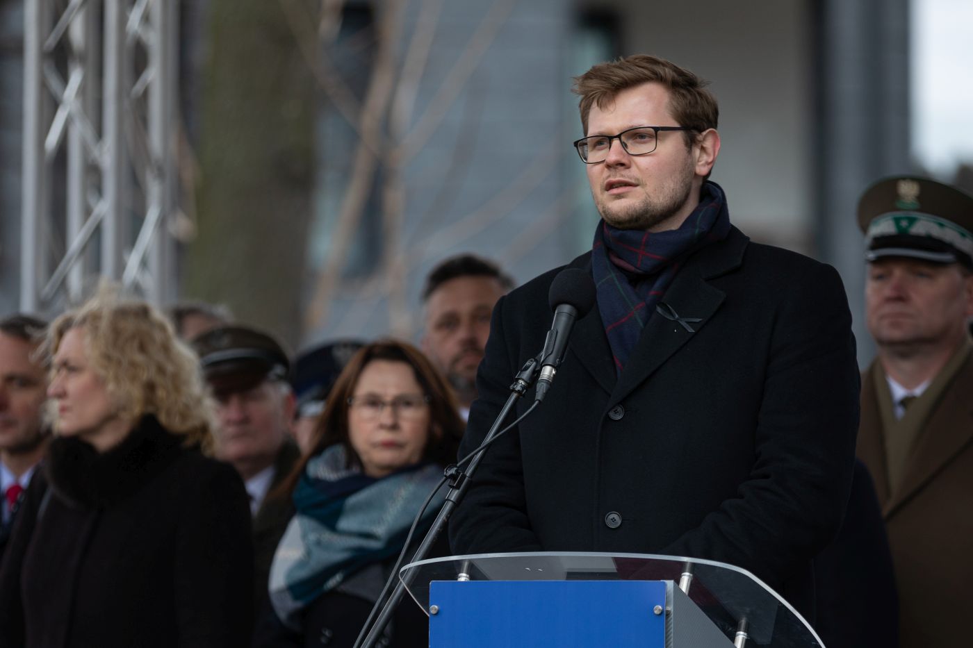 Wiceminister sprawiedliwości Michał Woś. Odsłonięcie pomnika Żołnierzy Wyklętych w Raciborzu – 27 lutego 2022. Fot. Mikołaj Bujak (IPN)