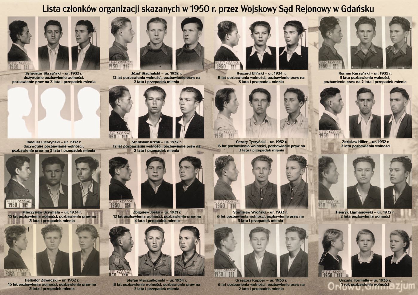 Lista członków organizacji skazanych w 1950 r. przez Wojskowy Sąd Rejonowy w Gdańsku