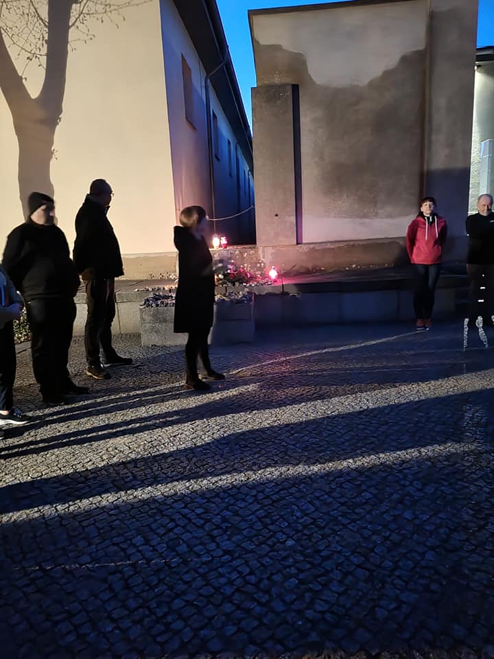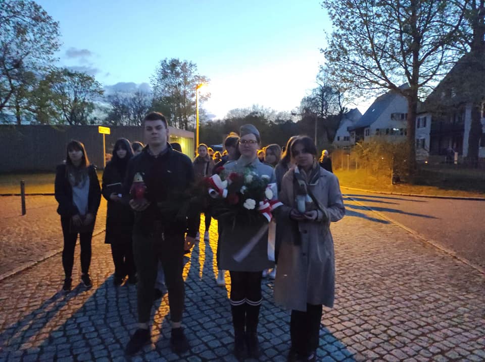 Swój pobyt w Miejscu Pamięci i Przestrogi Ravensbrück zainaugurowaliśmy późnym wieczorem. Wspólnie przeszliśmy pod Totengang – miejsce straceń i rozstrzeliwań więźniarek, w tym wielu Polskich kobiet i dziewcząt. Złożyliśmy kwiaty, zapaliliśmy znicze oraz odmówiliśmy modlitwę za ofiary niemieckich zbrodni. Jedna z finalistek, Kinga Kasprzyk z Dąbrowy Górniczej, wyrecytowała wiersz „List” autorstwa Grażyny Chrostowskiej więźniarki, która wraz z siostrą Apolonią została tu rozstrzelana w 1942 r.