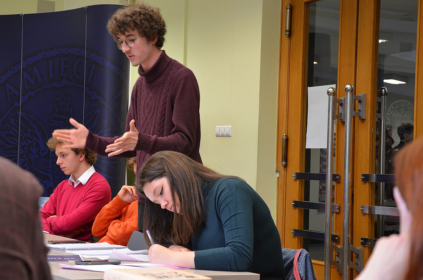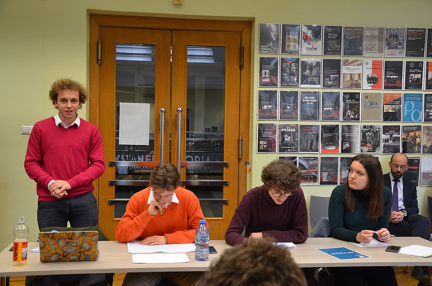 Uczestników turnieju finałowego i ich opiekunów przywitał na „Przystanku Historia” dr Michał Wenklar, zastępca dyrektora Oddziału IPN w Krakowie oraz koordynatorka przedsięwzięcia Katarzyna Łysak. Dr Wenklar wręczy też upominki wszystkim finalistom oraz nagrody zwycięzcom, zdobywcom drugiego miejsca i najlepszemu mówcy.