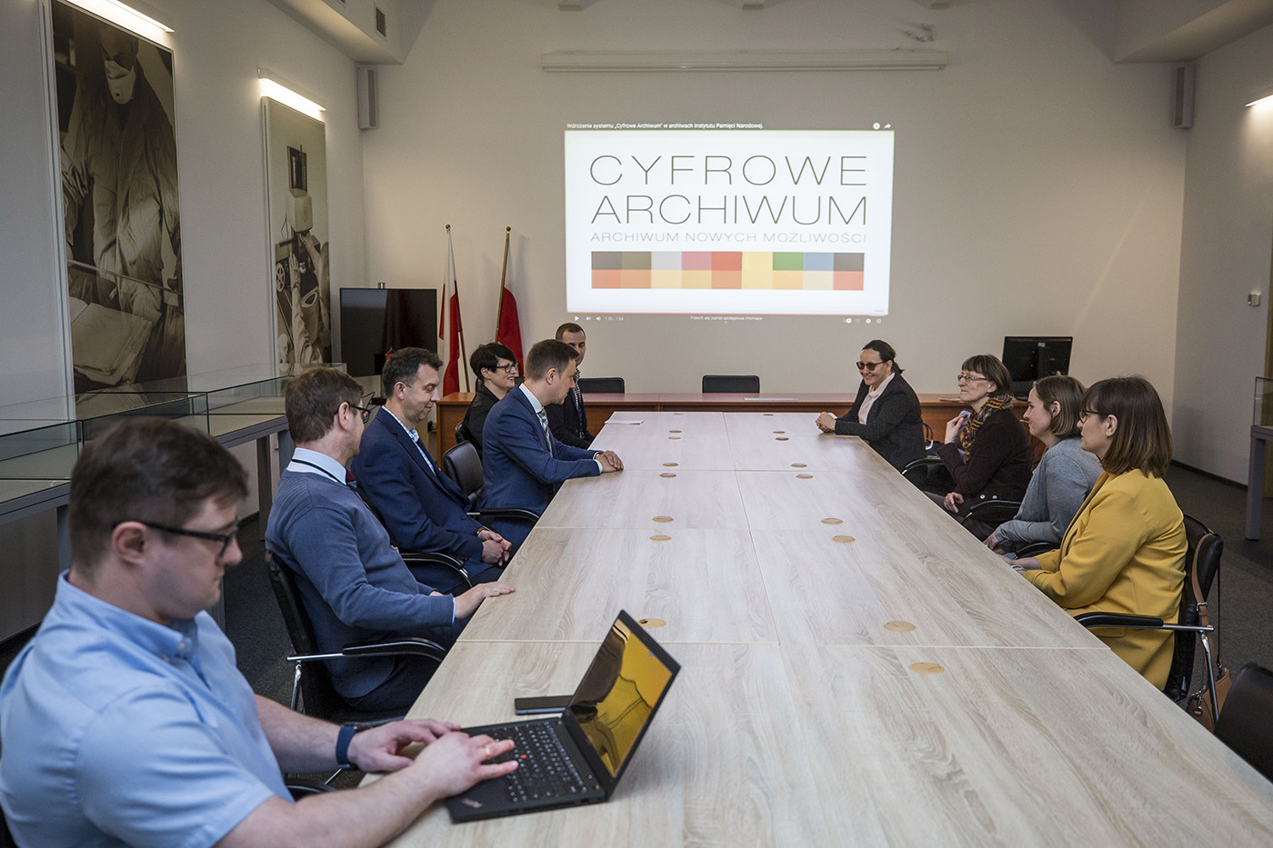 Gości przywitali dr Mariusz Żuławnik, zastępca dyrektora Archiwum IPN, oraz organizatorzy spotkania – przedstawiciele Wydziału Zarządzania i Rozwoju Cyfrowego Archiwum, a także pracownicy AIPN z innych wydziałów oraz Tomasz Hajnosz z Biura Informatyki IPN, kierownik projektu.
