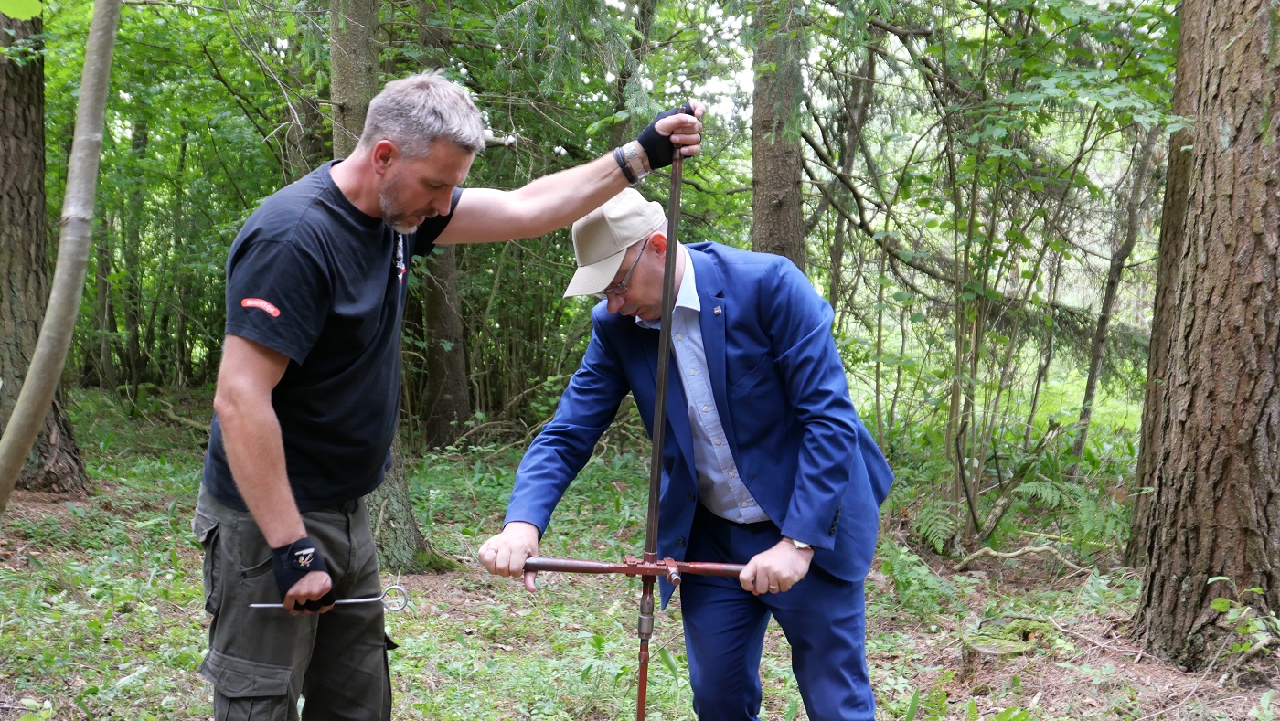 Wiceprezes IPN dr Mateusz Szpytma odwiedził zespół BPiI IPN, który rozpoczął miesięczny pobyt na Litwie, aby odnaleźć szczątki polskich żołnierzy poległych w latach 1914–45 – 11 lipca 2022. Fot. Katarzyna Pronobis (IPN)