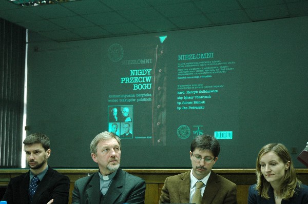 Redaktorzy publikacji, dr Filip Musiał i ks. prof. Józef Marecki, omówili koncepcję serii wydawniczej „Niezłomni”, której pierwszy tom „Nigdy przeciw Bogu...” poświęcono hierarchom Kościoła katolickiego. W tomie tym przedstawiono działania funkcjonariuszy UB/SB wobec czterech niezłomnych biskupów: kard. Henryka Gulbinowicza, abp. Ignacego Tokarczuka, bp. Juliusza Bieńka i bp. Jana Pietraszki. W dalszej części, dr Adam Dziurok i Łucja Marek z IPN O/Katowice przybliżyli postać sufragana katowickiego, biskupa Juliusza Bieńka oraz jego niezłomną postawę wobec władz państwowych i funkcjonariuszy UB/SB. Następnie, dr Filip Musiał i ks. prof. Józef Marecki z IPN O/Kraków, zaprezentowali postać biskupa krakowskiego Jana Pietraszki, który niemalże od początku swojej publicznej działalności, stał się obiektem ataków ze strony ówczesnych organów bezpieczeństwa. Spotkanie zakończyło się wspólną modlitwą w intencji beatyfikacji biskupa Jana Pietraszki, którą poprowadził biskup Tadeusz Rakoczy.