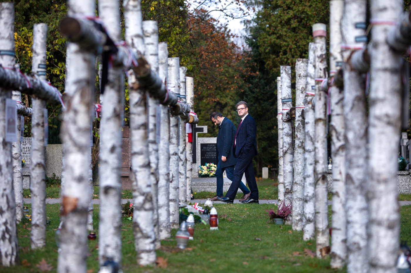 Następnie uczestnicy odwiedzili tzw. „Łączkę” na Cmentarzu Powązkowskim, gdzie ks. Tomasz Trzaska z BPiI opowiedział o prowadzonych w tym miejscu pracach poszukiwawczych i ich efektach.