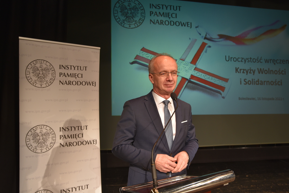 Uroczystość poprowadził dr Kamil Dworaczek, dyrektor Oddziału Instytutu Pamięci Narodowej we Wrocławiu, który przywitał zaproszonych gości. Po wprowadzeniu pocztu sztandarowego bolesławieckiej Solidarności i wspólnym odśpiewaniu Mazurka Dąbrowskiego odbyło się wręczenie Krzyży Wolności i Solidarności. Wręczenia dokonał zastępca prezesa Instytutu Pamięci Narodowej dr hab. Krzysztof Szwagrzyk, który w swoim przemówieniu podkreślał, że Polska nie zapomina o swoich bohaterach: