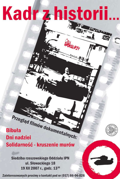 Instytut Pamięci Narodowej Oddział w Rzeszowie zorganizował przegląd filmowy pt. „Kadr z historii…”, który odbył się 19 grudnia 2007 r. w siedzibie rzeszowskiego oddziału IPN.