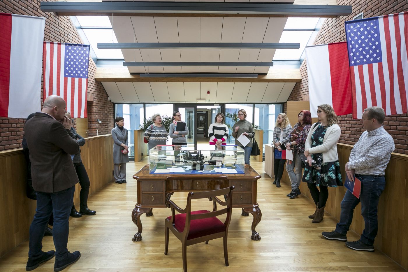 Na zakończenie nauczyciele i edukatorzy zwiedzili ekspozycję stałą Muzeum im. Kazimierza Pułaskiego w Warce, które kultywuje pamięć i chroni materialne dziedzictwo po polskim wychodźstwie, w szczególności po emigrantach do Stanów Zjednoczonych. Cześć zbiorów stanowią pamiątki po polsko-amerykańskim bohaterze walk o niepodległość Kazimierzu Pułaskim oraz innych wielkich Polakach, którzy wyemigrowali do Stanów Zjednoczonych. Wśród rekwizytów znajdziemy przedmioty związane między innymi z Tadeuszem Kościuszką, Julianem Ursynem Niemcewiczem, Heleną Modrzejewską czy Ignacym Janem Paderewskim.