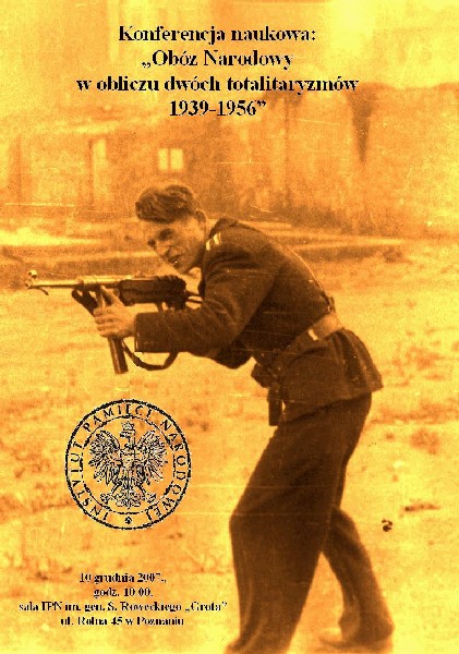 Konferencja naukowa „Obóz Narodowy w obliczu dwóch totalitaryzmów 1939–1956” odbyła się 10 grudnia 2007 r. w sali konferencyjnej im. gen. Stefana Roweckiego w siedzibie poznańskiego oddziału IPN przy ul. Rolnej 45a w Poznaniu. Patronem honorowym imprezy był wicemarszałek Sejmu RP prof. Stefan Niesiołowski.