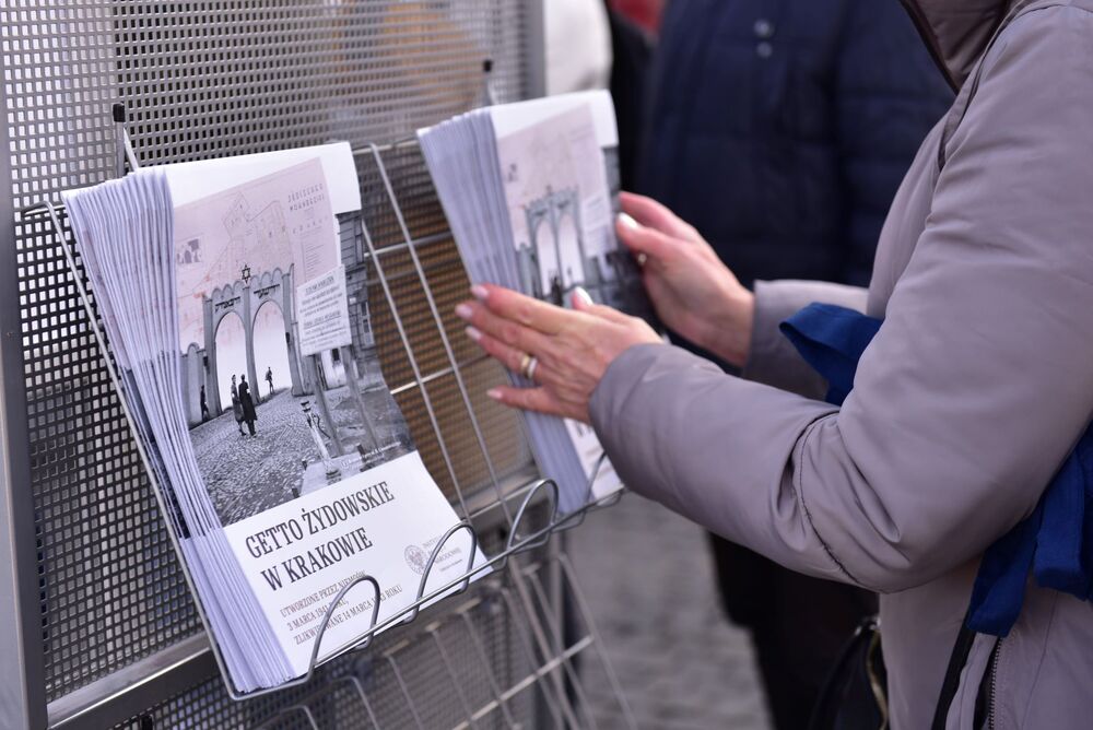 Instytut Pamięci Narodowej reprezentował dr hab Filip Musiał, dyrektor krakowskiego oddziału. Pracownicy Oddziałowego Biura Edukacji Narodowej rozdali kilkaset egzemplarzy popularnonaukowej broszury/mapy getta, autorstwa Jerzego Sokołowskiego oraz Michała Zajdy, która została przygotowana specjalnie na tę uroczystość. Pomaga ona w odnalezieniu śladów getta we współczesnym Krakowie oraz przedstawia pokrótce jego historię. Michał Zajda z Archiwum IPN w Krakowie jest także autorem wystawy na pl. Bohaterów Getta. Zarówno wystawa jak i publikacja zostały przygotowane w języku polskim i angielskim.