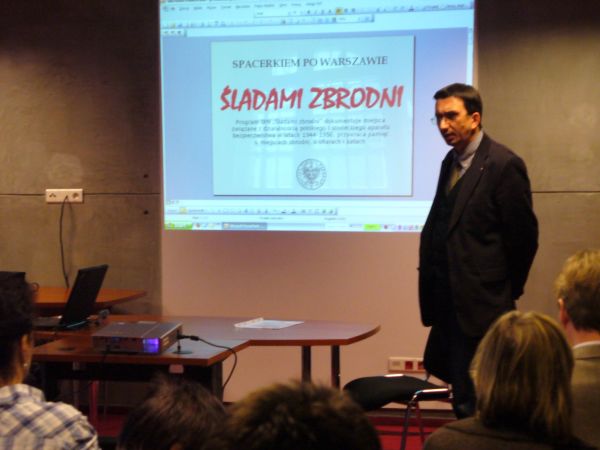 Stał się on okazją do zaprezentowania programu IPN „Śladami zbrodni”. Dr Tomasz Łabuszewski – naczelnik Oddziałowego Biura Edukacji Publicznej, koordynator projektu, mówił o zbrodniach dokonanych przez komunistyczny aparat represji oraz powojennych katowniach w Warszawie, wśród których wymienił m.in. więzienie przy ul. Rakowieckiej, areszt przy ul. Strzeleckiej, budynek liceum im. Władysława IV.