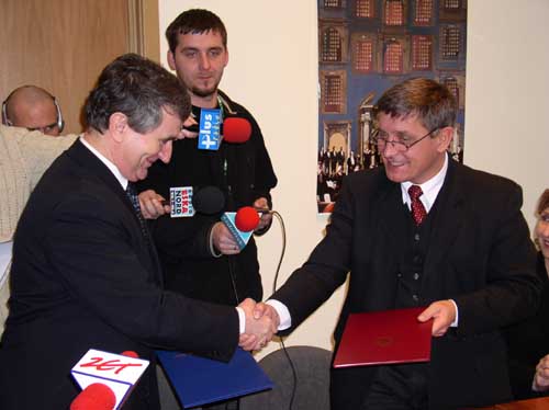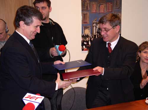 Wcześniej (o godz. 11.00) prof. Leon Kieres oraz prof. Andrzej Ceynowa, Rektor Uniwersytetu Gdańskiego podpisali umowę o współpracy pomiędzy Instytutem Pamięci Narodowej i Uniwersytetem Gdańskim.