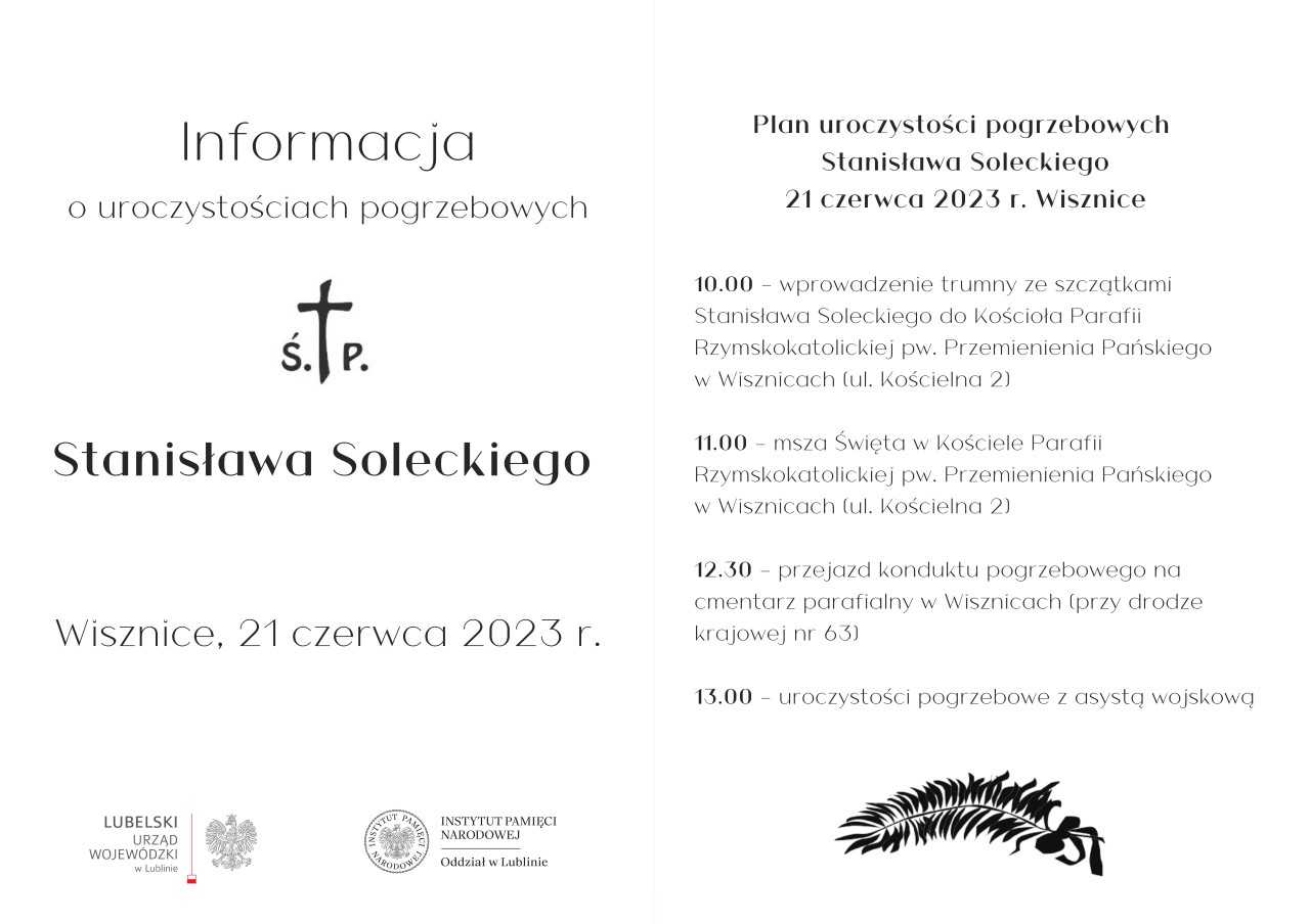 Zgodnie z wolą rodziny, Stanisław Solecki ma zostać pochowany w grobie rodzinnym, w którym obecnie spoczywają jego rodzice - Anna i Piotr Soleccy, znajdującym się na cmentarzu parafialnym w Wisznicach.