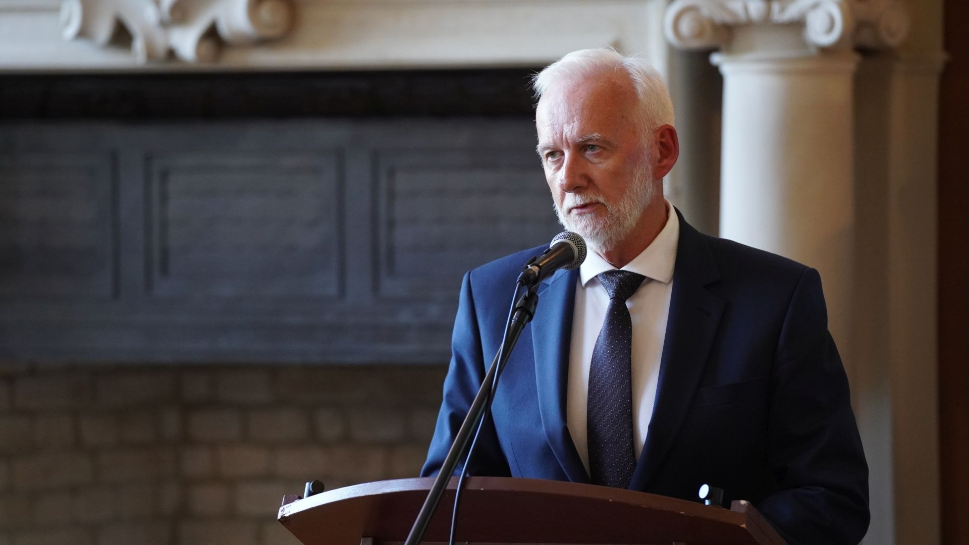 Prezentacja publikacji Instytutu Pamięci Narodowej „Dokumenty zbrodni wołyńskiej tom 1”. Na zdj. dr hab. Karol Polejowski, wiceprezes IPN – Tarnobrzeg, 18 lipca 2023. Fot. Szczepan Barczyk (IPN)