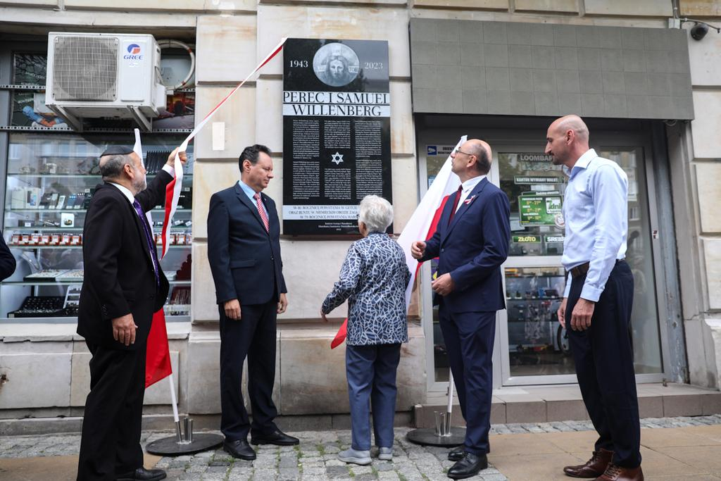 Odsłonięcie tablicy upamiętniającej Pereca i Samuela Willenbergów – Warszawa, 1 sierpnia 2023. Fot. Sławek Kasper (IPN) -