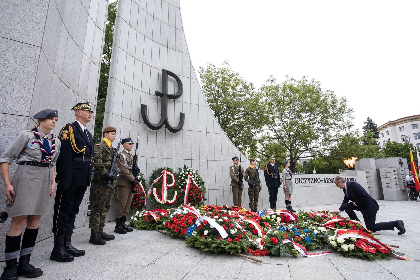 Uroczystości przed pomnikami gen. S. Roweckiego „Grota” oraz Polskiego Państwa Podziemnego i Armii Krajowej w Warszawie. Fot. Sławek Kasper (IPN) -