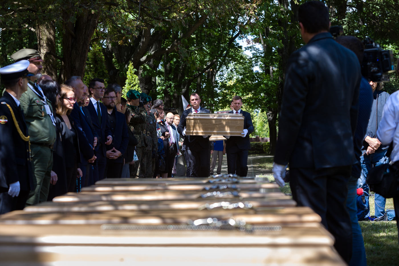 Dziewięciu nieznanych z imienia i nazwiska bohaterów Powstania, którzy podjęli walkę przeciwko znienawidzonej, ludobójczej okupacji spocznie dziś na poświęconej ziemi na Cmentarzu Powstańców Warszawskich. Spoczną u boku swoich towarzyszy broni. Spełniamy tym aktem swój obowiązek. Jestem tu również dlatego, że tak czujemy w głębi naszego serca, bo ich walka to nasza dzisiejsza wolność. O tym musimy pamiętać. Niech więc trwa pamięć o bohaterstwie Powstańców i ludności cywilnej, a tych dziewięciu bohaterów niech wreszcie zazna godnego pochówku – wskazał