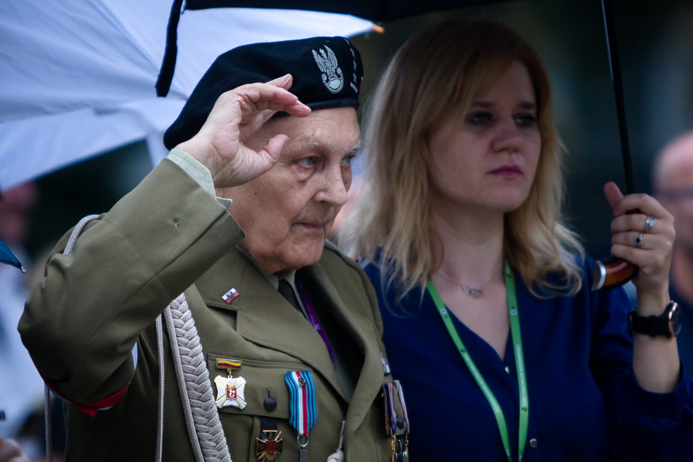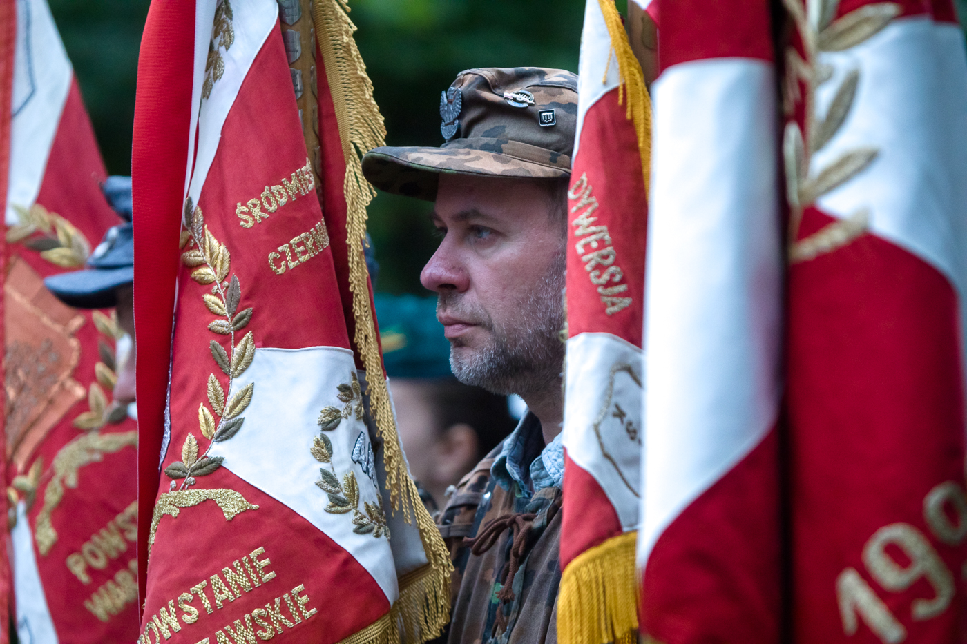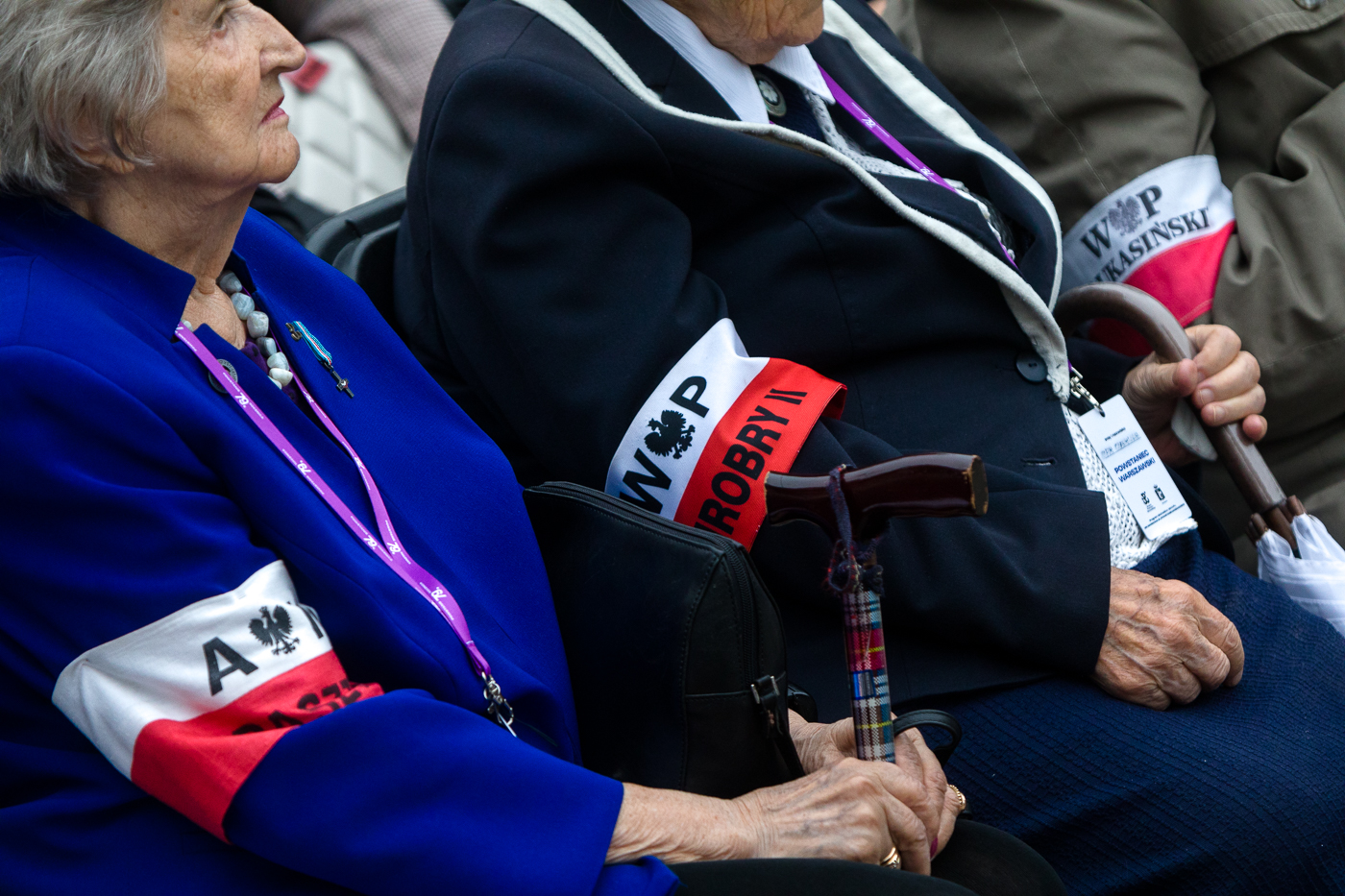 Następnie uczestnicy uroczystości złożyli wieńce i wiązanki kwiatów, oddając hołd cywilnym ofiarom Powstania.