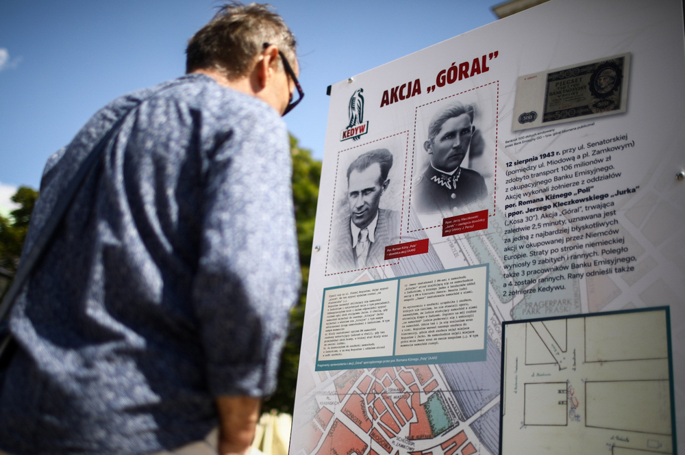 „Spotykamy się 11 sierpnia w przeddzień 80. rocznicy akcji Góral, jednej z najbardziej znanych i legendarnych akcji przeprowadzonych przez Kedyw AK. W niewiele ponad 2 min. oddział Kedywu zdobył 106 mln. złotych z okupacyjnego Banku Emisyjnego, a pieniądze to niezwykle istotny element prowadzenia walki zbrojnej. Tych akcji były tysiące, ale chciałbym jeszcze przypomnieć o roli kobiet w kierownictwie dywersji, o słynnym Dysku, czyli Dywersji i Sabotażu Kobiet. Zofia Franio i Wanda Gertz to chyba dwa najbardziej znane nazwiska Polek, żołnierzy Kedywu, które zasłynęły chociażby z prowadzenia akcji minerskich” - przypomniał prezes Polejowski.