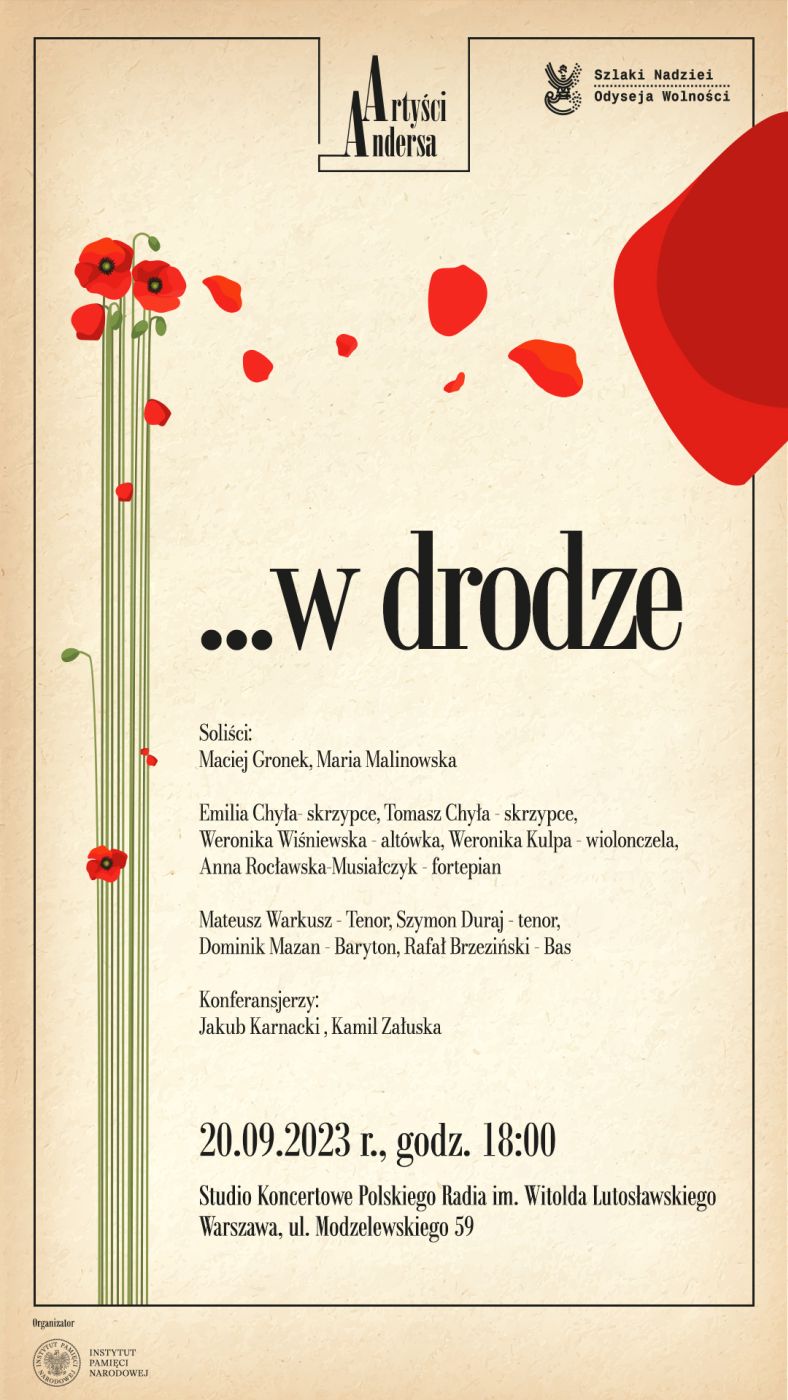 Koncert „…w drodze” to wydarzenie, podczas którego artyści przybliżyli widowni twórczość legendarnych kompozytorów i autorów tekstów: Jerzego Petersburskiego, Mariana Hemara, Henryka Warsa i Alfreda Schutza. Była to okazja spotkania z muzyką z okresu międzywojennego, wojennego i powojennego, która stanowiła tło ważnych wydarzeń dla Polski. Nowe i nietypowe aranżacje zostały specjalnie przygotowane na potrzeby projektu „Artyści Andersa”. Usłyszeliśmy m.in.: Rumbę FiestęABC miłościMów cośBędziesz dla mnie urzędem skarbowymPójdź w krainę marzeńNocami w gwiazdy spoglądamMoją wioskęŻołnierską brać, Drogę do Warszawy.