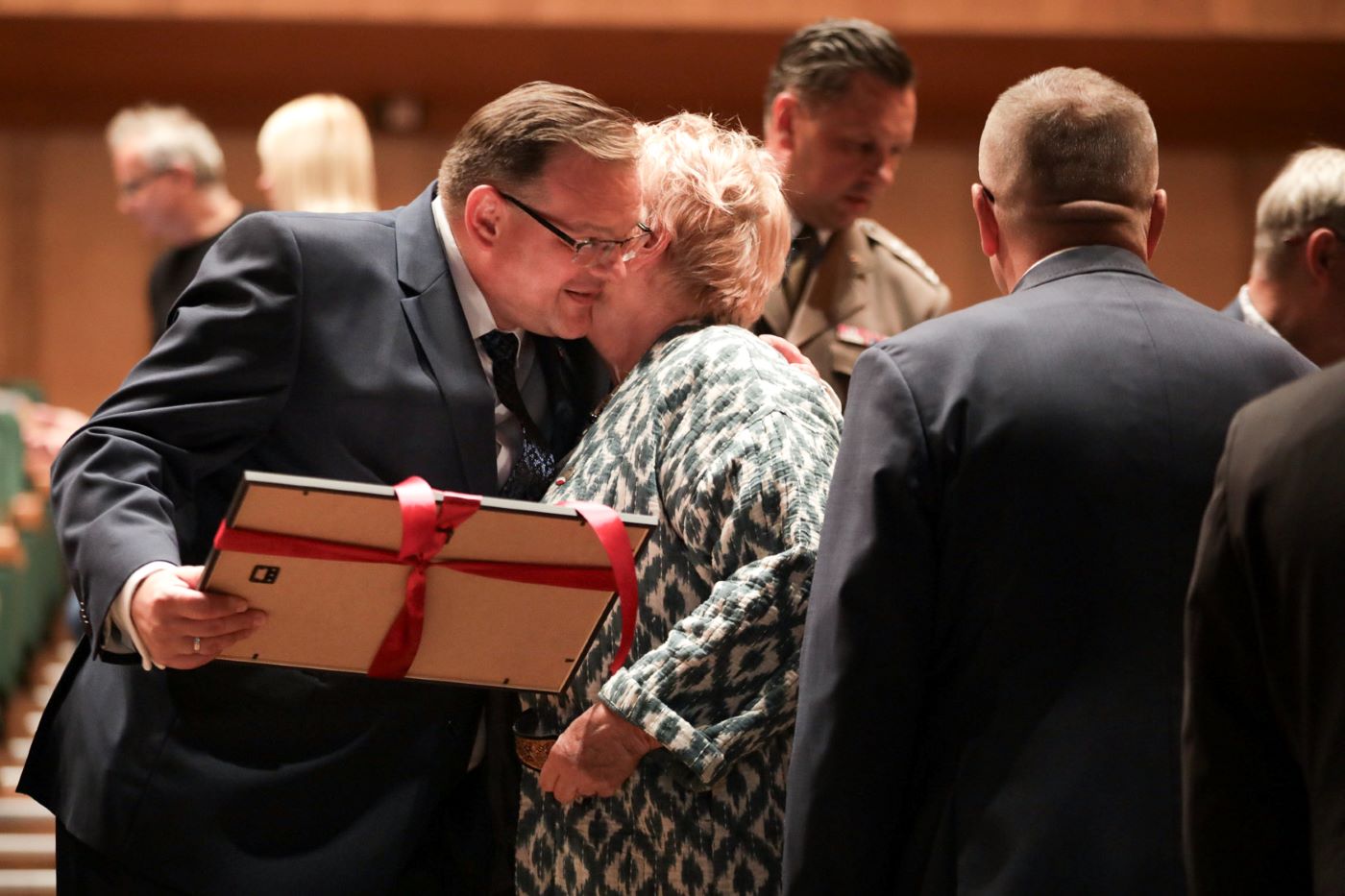 Wręczenie medalu Reipublicae Memoriae Meritum oraz koncert „…w drodze” w ramach cyklu „Artyści Andersa”. Na zdj. dr Karol Nawrocki, prezes IPN (L) oraz Jan Józef Kasprzyk, szef Urzędu do Spraw Kombatantów i Osób Represjonowanych (P) – Warszawa, 20 września 2023. Fot. Mikołaj Bujak (IPN)