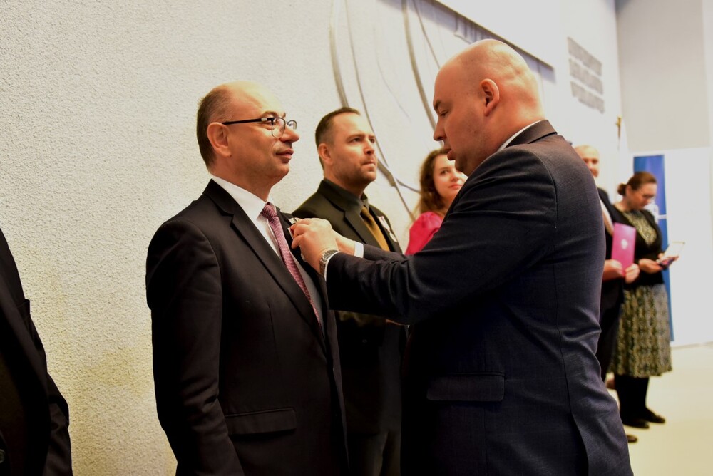 Po odebraniu nagrody z rąk ministra Jana Dziedziczaka, dr Karol Nawrocki zabrał głos w imieniu odznaczonych: