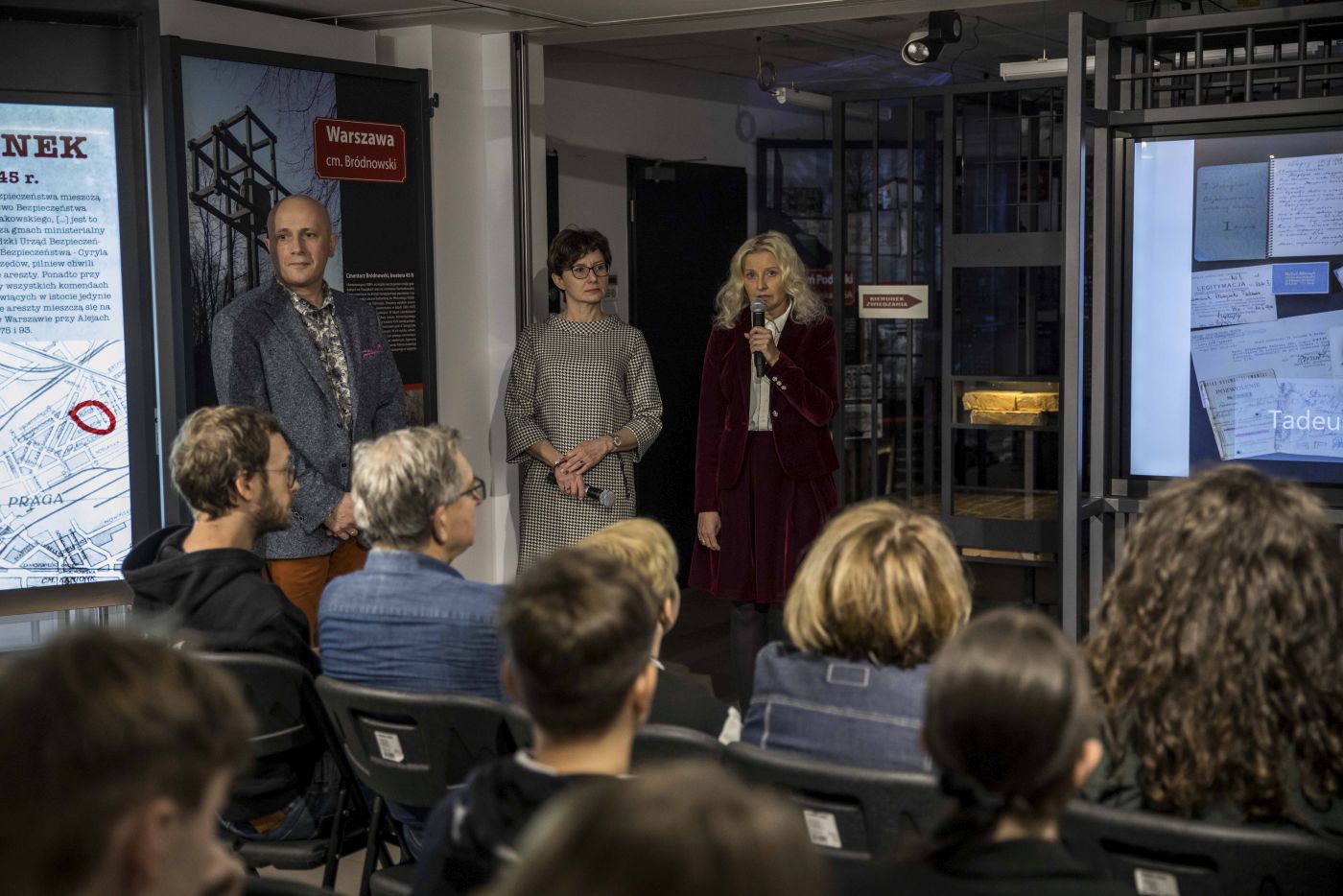 Inauguracja aktualnej odsłony projektu „Historia w artefaktach zapisana” miała wyjątkowy charakter, gdyż mieliśmy zaszczyt gościć na niej najbliższą rodzinę naszego bohatera. Wyjątkowych gości spotkania oraz uczniów Niepublicznego Liceum nr 2 im. Janusza Korczaka w Warszawie powitała dr Marta Milewska, kierownik Izby Pamięci Strzelecka 8, która podkreśliła wyjątkowość i autentyzm miejsca, w którym prezentowana jest wystawa.