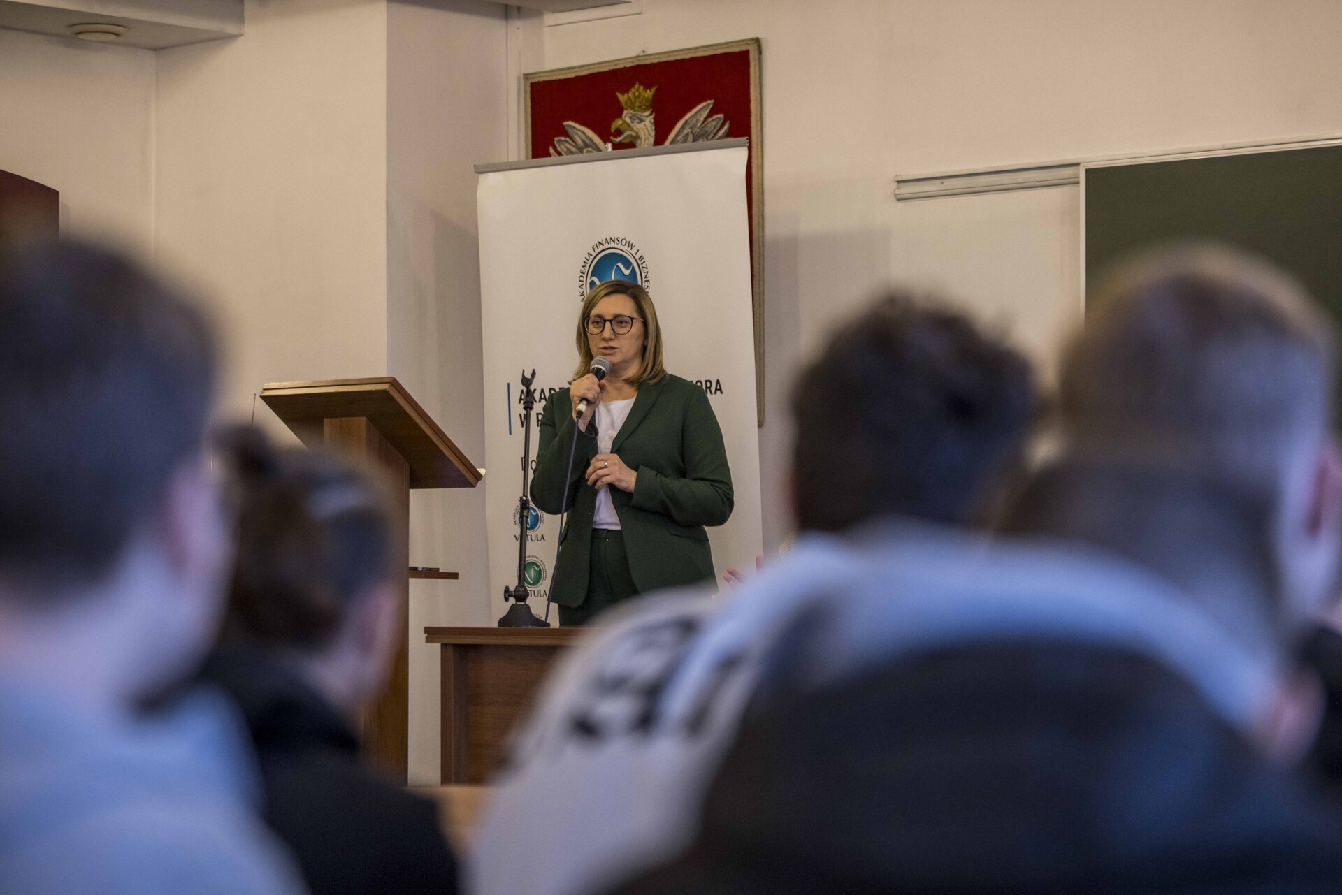 Następnie głos zabrała dr hab. Jolanta Załęczny (prof. AFiB), dyrektor Instytutu Historii i Szkoły Doktorskiej AFiB Vistula w Warszawie, która opowiedziała o artefaktach muzealnych i archiwalnych, jako nieocenionych źródłach do poznawania przeszłości.