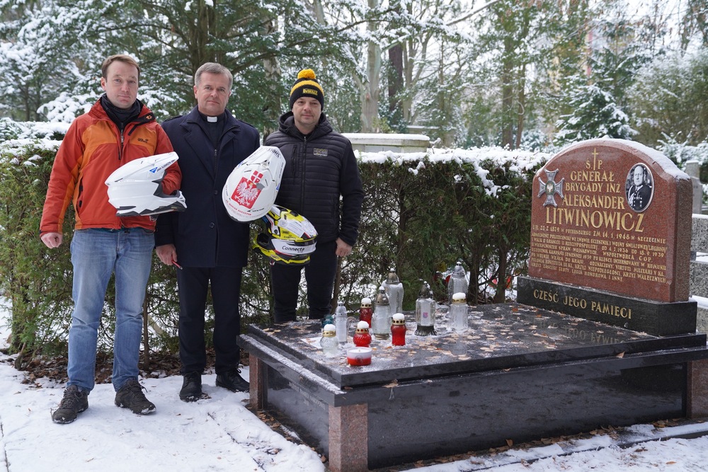 Przed Rajdem Dakar Bartłomiej Tabin razem z kolegami – ks. Marianem Augustynem i Janem Ślusarczykiem odwiedzili na Cmentarzu Centralnym grób gen. Aleksandra Litwinowicza.