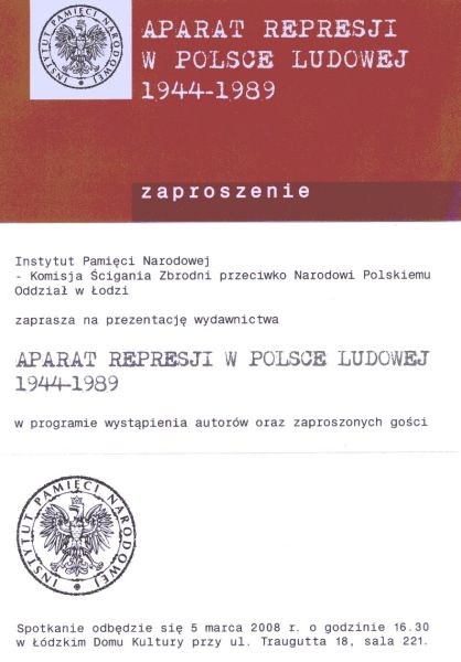 Prezentacja V tomu czasopisma „Aparat Represji w Polsce Ludowej 1944–1989” – Łódź, 5 marca 2008 r.
