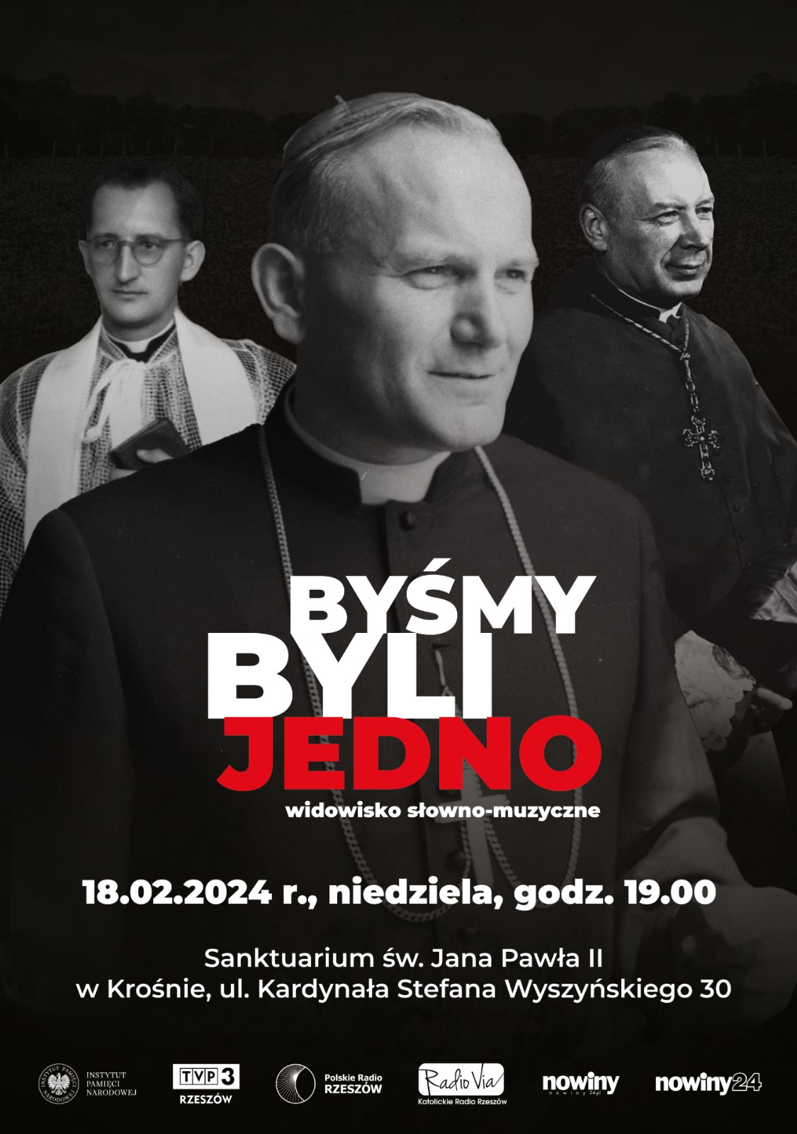 Widowiskiem „Byśmy byli jedno” pragniemy opowiedzieć historię Kościoła polskiego w czasach komunizmu. Narracja toczyć się będzie wokół działalności trzech czołowych postaci XX wieku – Stefana Wyszyńskiego, Karola Wojtyły oraz Franciszka Blachnickiego. Wydarzenie jest hołdem dla niezwykłych kapłanów poprzez ukazanie ścieżki ich życia wobec trudów prześladowań reżimu komunistycznego.