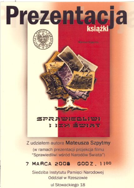 Prezentacja albumu Mateusza Szpytmy „Sprawiedliwi i ich świat” – Rzeszów, 7 marca 2008 r.
