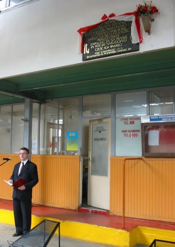 Kolejnym punktem uroczystości rocznicowych było złożenie kwiatów pod tablicą pamiątkową przed Bramą Główną HCP. Po przywołaniu historycznego sygnału syreny zakładowej HCP, która towarzyszyła wymarszowi robotników 28 czerwca 1956 r. i odśpiewaniu hymnu narodowego powitał uczestników Tadeusz Pytlak, przewodniczący MK NSZZ „Solidarność” H. Cegielski SA. Następnie, po krótkiej części artystycznej, głos zabrał Prezes IPN prof. Leon Kieres, który powiedział m.in., że to właśnie robotnicy dawnych zakładów Hipolita Cegielskiego sprzeciwili się, po raz pierwszy w Polsce, stalinowskiemu systemowi. „Wymagało to wielkiej odwagi i narażało na represje ówczesnych władz. Mężnymi i mądrymi przywódcami fabrycznej załogi byli robotnicy, członkowie tej załogi.. Ich nazwiska przeszły do legendy Poznania i historii Polski. (…) Pamięć o historii Poznańskiego Czerwca stała się inspiracją dla kolejnych pokoleń Polaków walczących o wolność i niepodległość.”