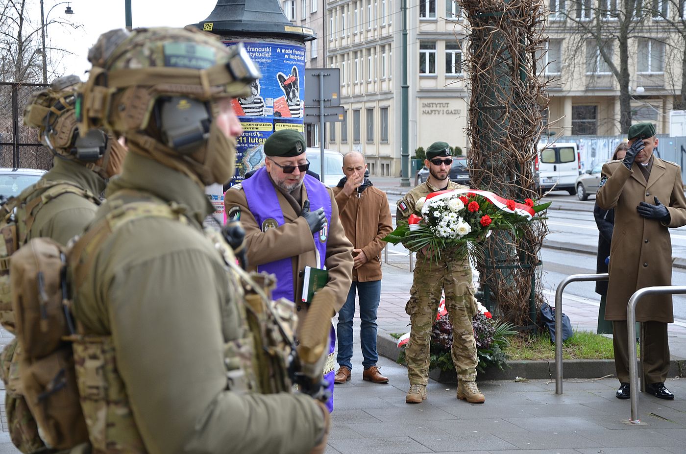 Zgromadziliśmy się przy kamienicy, w której w 1895 r. urodził się August Emil Fieldorf. Po krótkiej modlitwie poprowadzonej przez ks. kan. płk. dr. Piotra Srokę, dziekana wojsk specjalnych, zebrani złożyli kwiaty i zapalili znicze pod tablicą pamięci. Krakowski oddział IPN reprezentował dyrektor dr hab. Filip Musiał, Jednostkę Wojskową NIL – dowódca płk Piotr Gomuła. Posterunek honorowy wystawiła JW NIL.