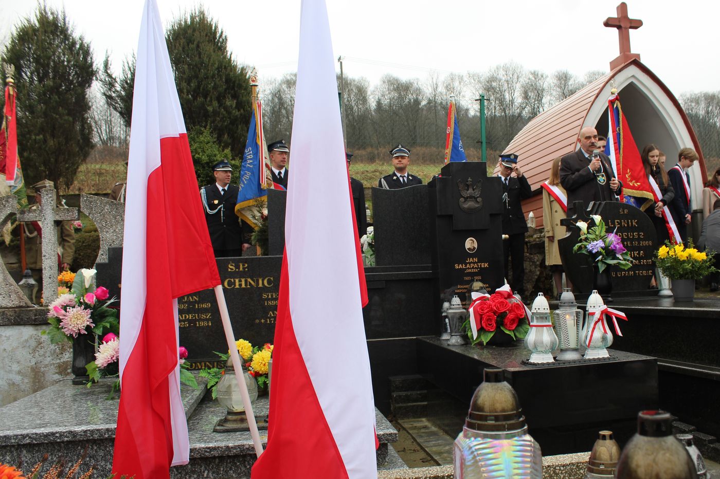 Na początku w kościele Najświętszego Serca Pana Jezusa w Jachówce odbyły się uroczystości z okazji Narodowego Dnia Pamięci Żołnierzy Wyklętych. Po mszy świętej zebrani przeszli na cmentarz parafialny. Sfinansowany przez IPN nowy nagrobek Jana Sałapatka poświęcił proboszcz ks. Mariusz Mendyk, a dyrektor Oddziału IPN w Krakowie dr hab. Filip Musiał wręczył akt opieki nad grobem partyzanta prezes Stowarzyszenia Niezłomni Zorza Elżbiecie Głuc.