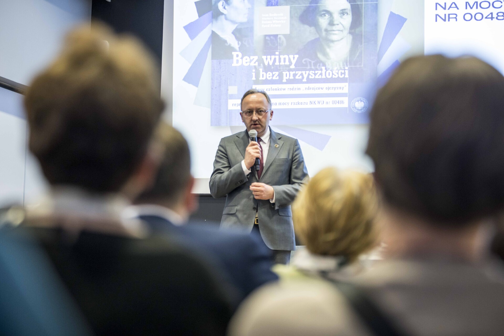 Następnie głos zabrał zastępca prezesa IPN dr hab. Karol Polejowski, który podkreślił, jakie znaczenie ma badanie i przypominanie sowieckich zbrodni popełnionych na Polakach w ramach antypolskiej operacji NKWD, a także podziękował autorom za podjęcie tematu tragicznych losów najbliższych – żon i dzieci – Polaków uznanych przez sowiecką machinę terroru za „zdrajców ojczyzny”.