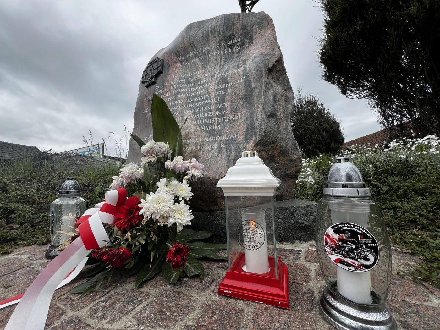 Na koniec pobytu w Sierakowicach uczestnicy rajdu na czele z dr. hab. Karolem Polejowskim zapalili znicze pod pomnikiem upamiętniającym żołnierzy 5. szwadronu 5 Wileńskiej Brygady AK, który został odsłonięty w 2022 roku staraniem gdańskiego IPN oraz Towarzystwa Upiększania Miasta Kartuzy.