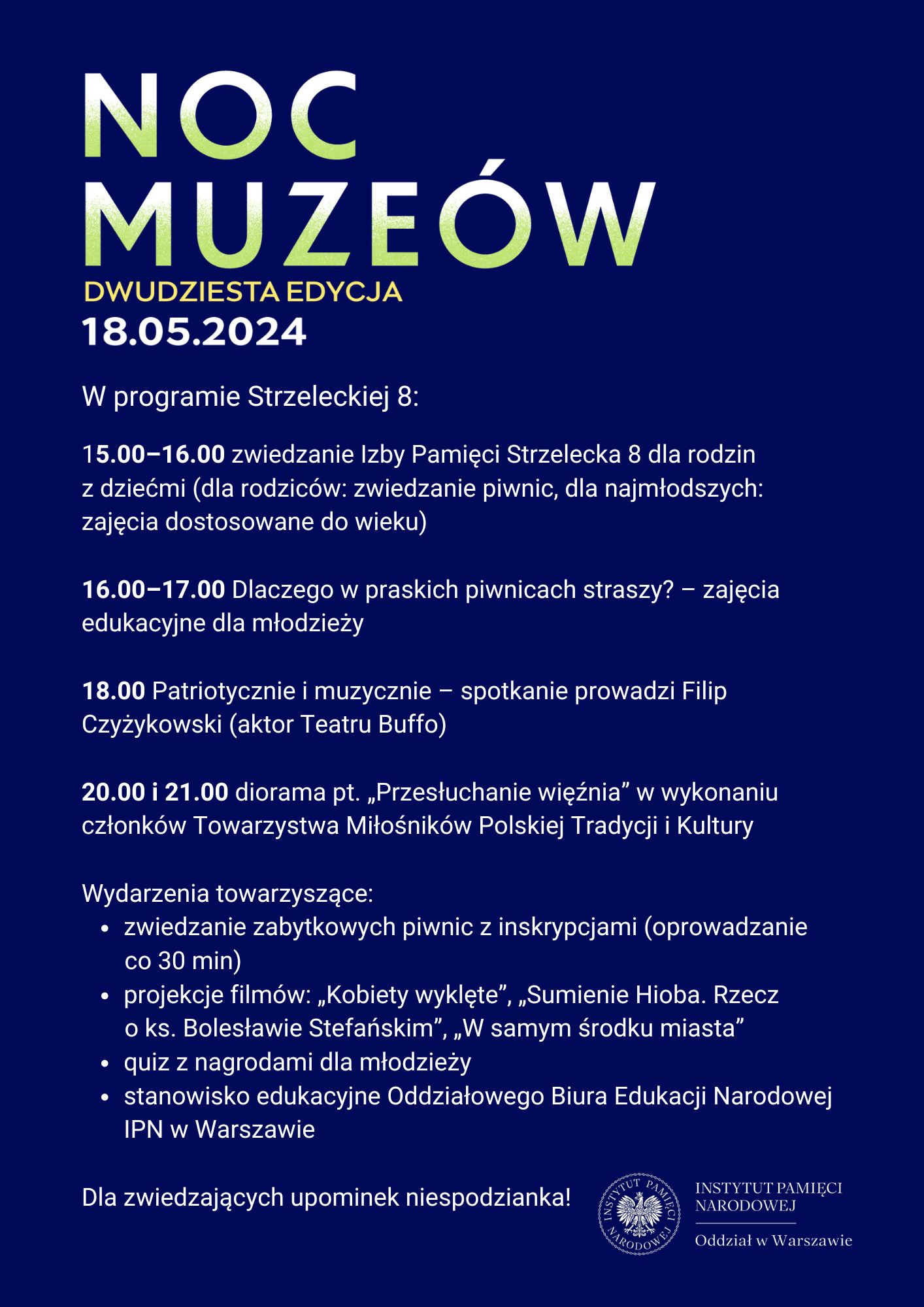 Noc Muzeów na Strzeleckiej 8 – Warszawa, 18 maja 2024