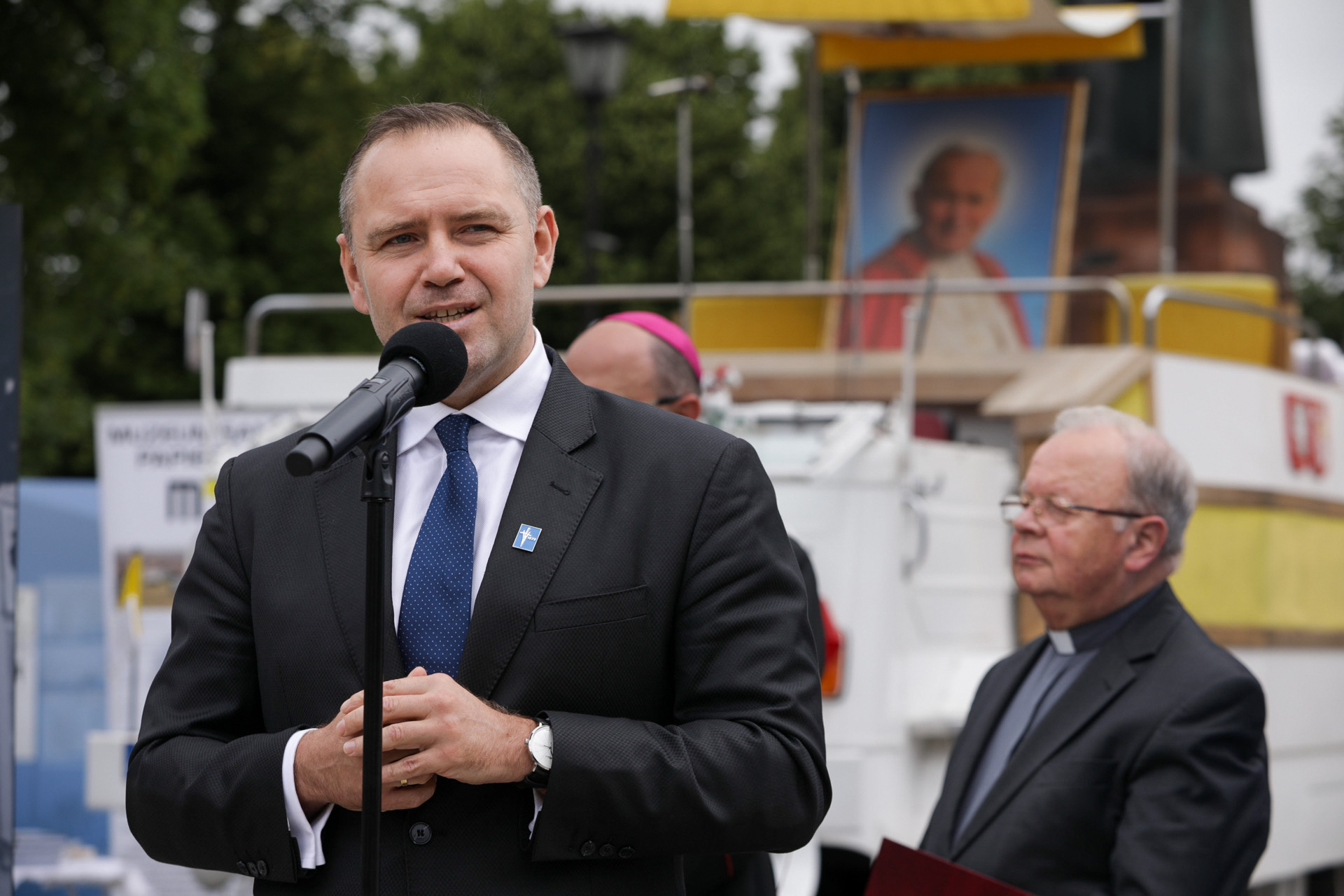 – Wciąż musimy dbać o polską duszę, którą w wielu momentach chce nam się zabrać odrywając Polskę od jedności świata chrześcijańskiego Europy, odrywając nas od rozmiłowania w naszej historii i w naszym dziedzictwie kulturowym, od prawdy o polskiej historii. W naszej stolicy Warszawie odbierając nam symbol krzyża, symbol zbawienia, symbol miłosierdzia, symbol miłości do drugiego człowieka. Dlatego wszyscy dziś jesteśmy zobowiązani wobec Papieża Jana Pawła II jego historii, jego dziedzictwa, jego słów tu w Gnieźnie, w Krakowie i w całej Polsce. Bo te słowa stanowią o naszej tożsamości, teraźniejszości i naszej przyszłości.