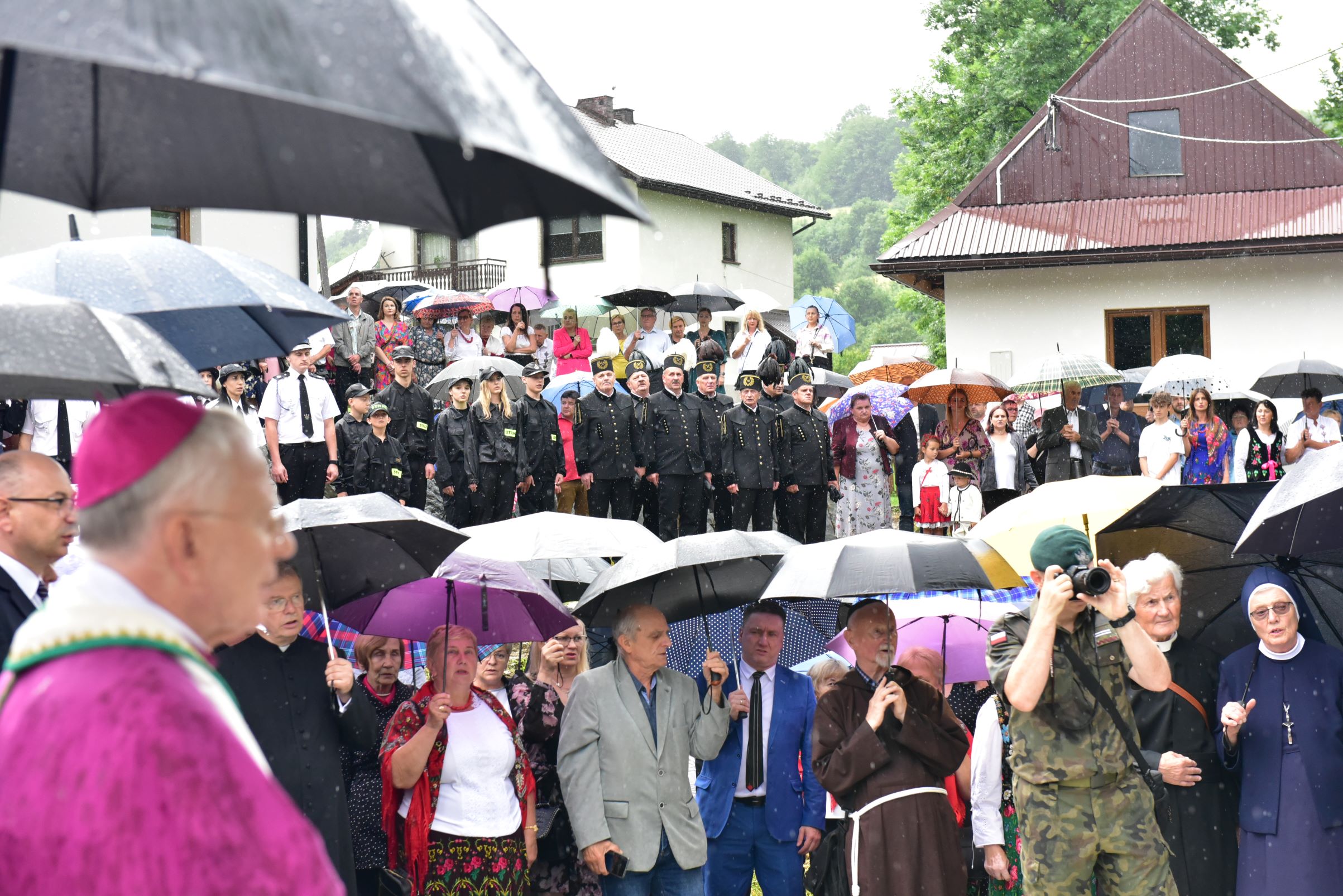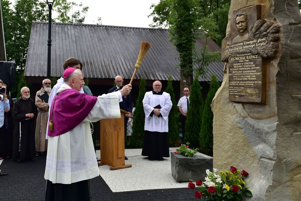 Następnie pochód przeszedł pod upamiętnienie ks. M. Rapacza (Rola Potok) w pobliżu miejsca, gdzie znajdował się rodzinny dom błogosławionego, w którym urodził się i wychował.