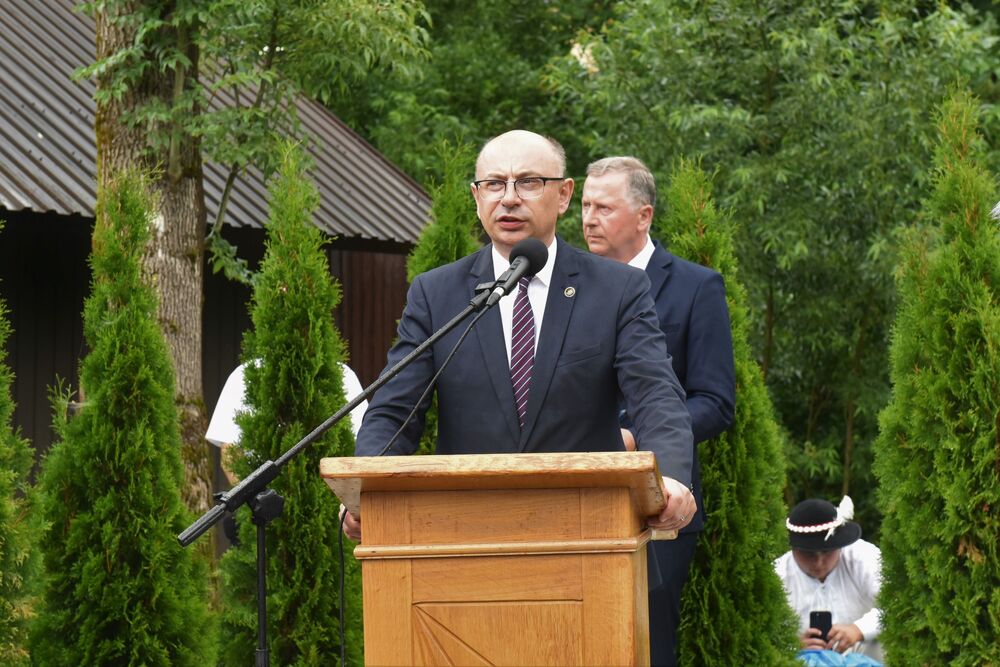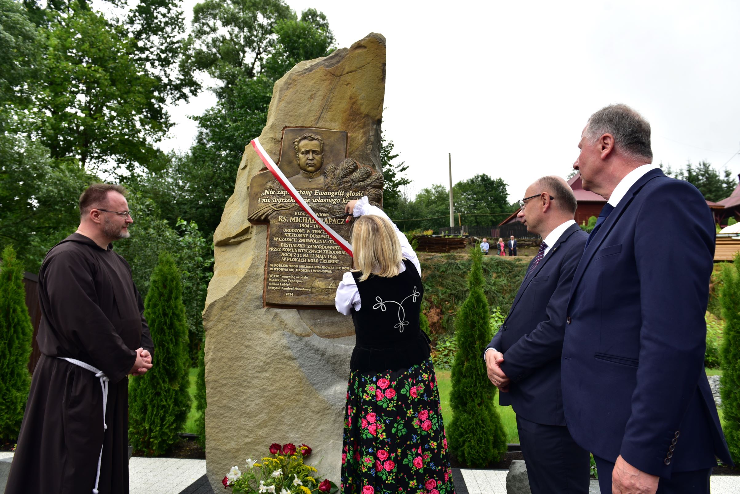 Przed uroczystym odsłonięciem tablicy, dr Mateusz Szpytma zabrał głos. W przemówieniu podkreślił wagę wychowania dzieci i młodzieży w duchu patriotyzmu i wartości chrześcijańskich, nawiązując do domu rodzinnego bł. ks. Rapacza.