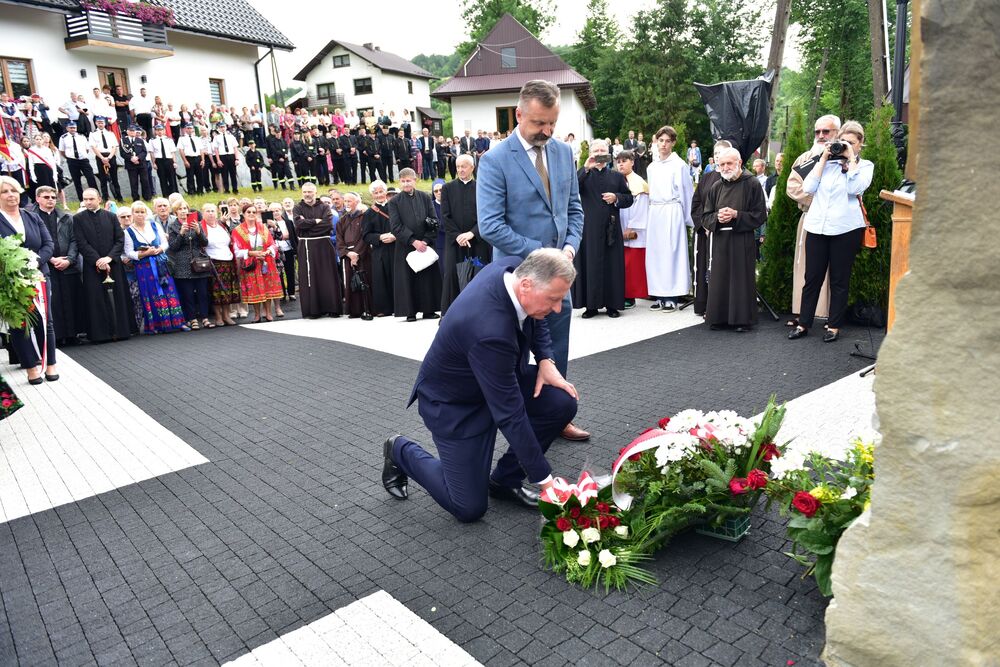 Po uroczystym odsłonięciu upamiętnienia, delegacje złożyły pod nim kwiaty.