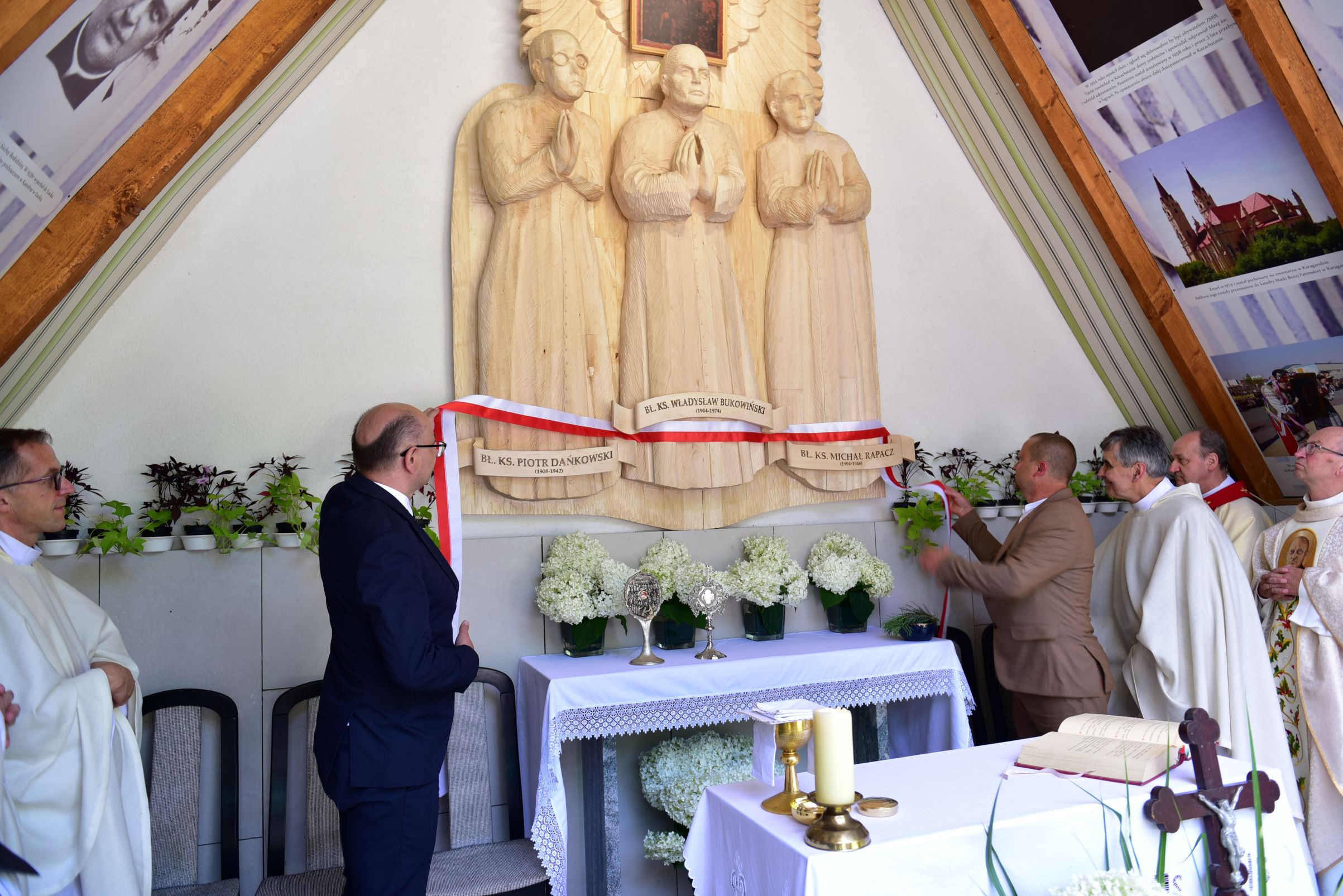Następnie dr Mateusz Szpytma wraz z Pawłem Marczyńskim prezesem Stowarzyszenia im. bł. Ks. Władysława Bukowińskiego „Ocalenie” uroczyście odsłonili płaskorzeźbę.
