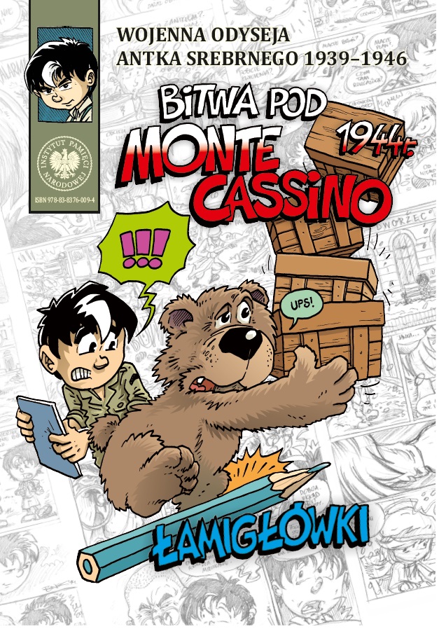 Bitwa pod Monte Cassino 1944 r., scenariusz Tomasz Robaczewski, rysunki Huber Ronek, koncepcja serii, wkładka historyczna i konsultacja historyczna Tomasz Łabuszewski, Warszawa 2015, 42 s. (seria „Wojenna odyseja Antka Srebrnego 1939–1944”, zeszyt 4)