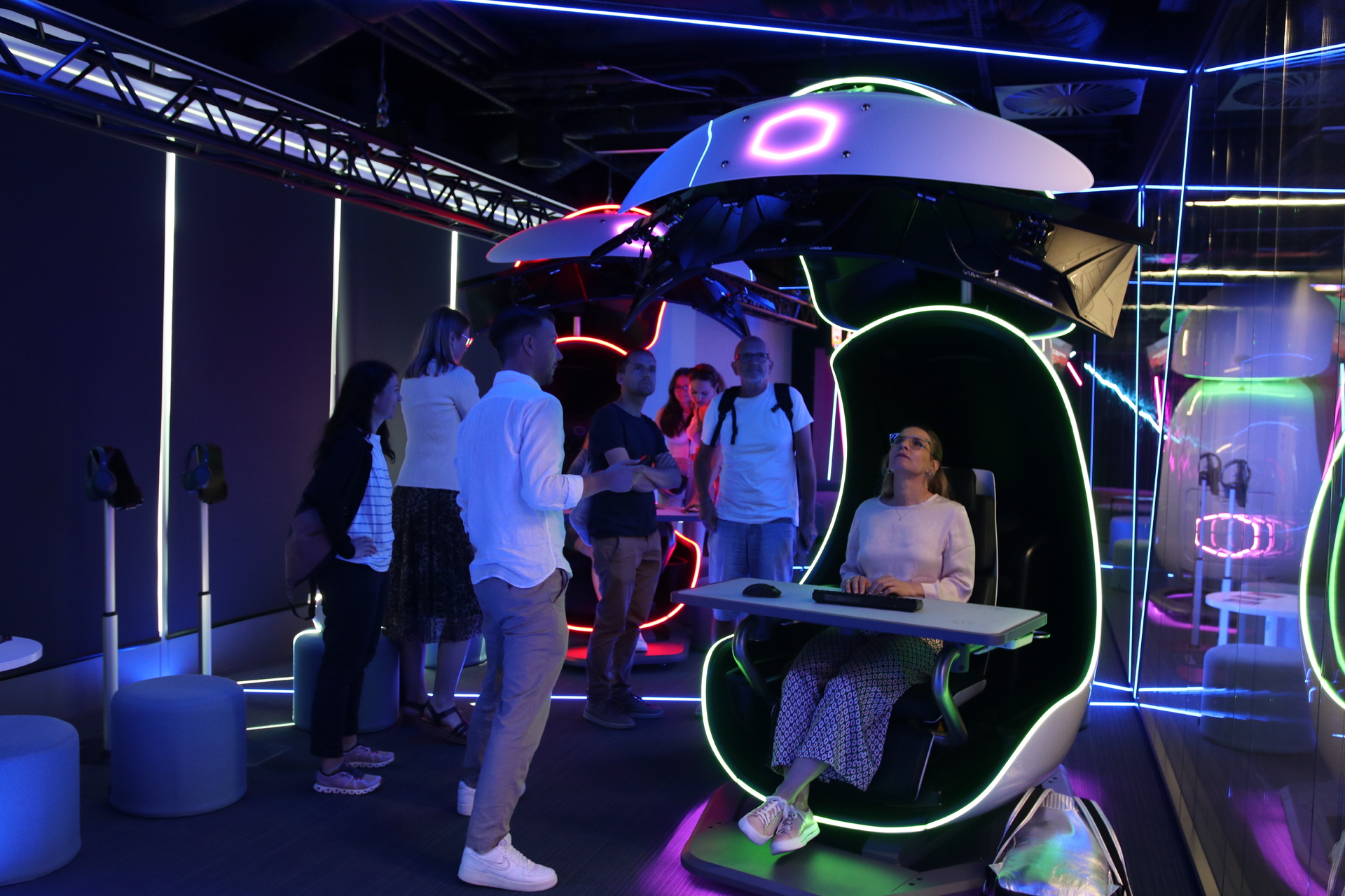 Tobiasz Wultański z Biura Nowych Technologii IPN zaprezentował gościom immersyjną ofertę edukacyjną Instytutu. Szczególne zainteresowanie wzbudziła strefa nowych technologii, w której historia jest opowiadana za pomocą najnowocześniejszych narzędzi, w tym kapsuł gamingowych.