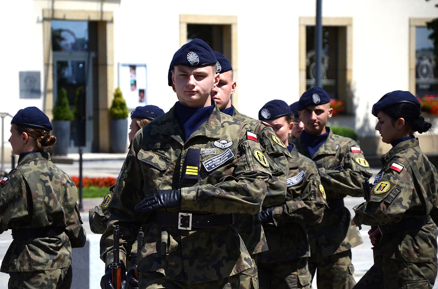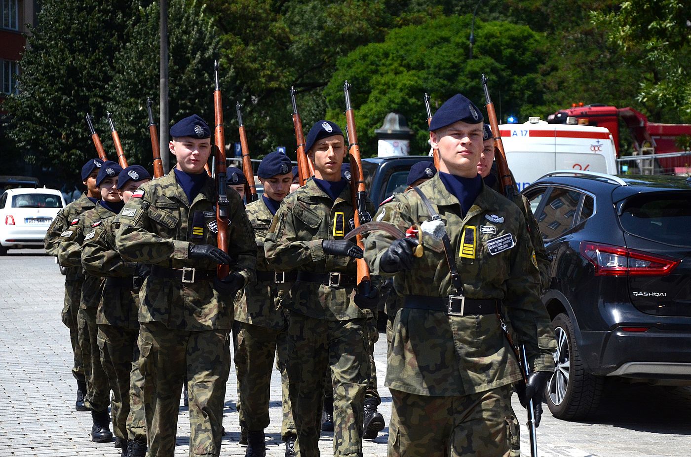 Po uroczystościach na ul. Powiśle młodzież z klas mundurowych Liceum im. batalionu „Parasol” w Trzebini dała pokaz musztry paradnej.