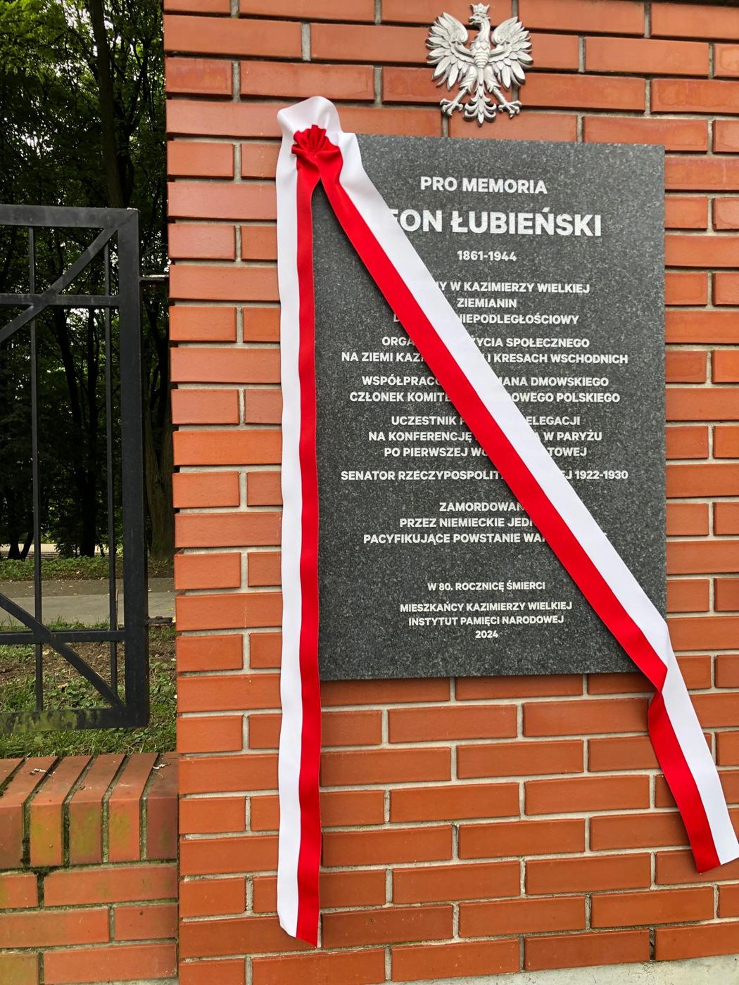 Oddział IPN w Krakowie reprezentował zastępca dyrektora dr Michał Wenklar. W swoim wystąpieniu podkreślił fakt, że życie Leona Łubieńskiego, łączyło w sobie elementy wielkiej polityki i najważniejszych wydarzeń w historii Polski oraz elementy historii lokalnej, którą tworzył m.in. na ziemi kazimierskiej. Dr Wenklar wskazał również, że Łubieński był reprezentantem pokolenia, które cieszyło się z odzyskania niepodległości, ale także było świadkiem dramatu narodu, który po 20 latach wolności znów znalazł się w niewoli. Łubieński był wśród tych, którzy tę ponowną niewolę przypłacili życiem.