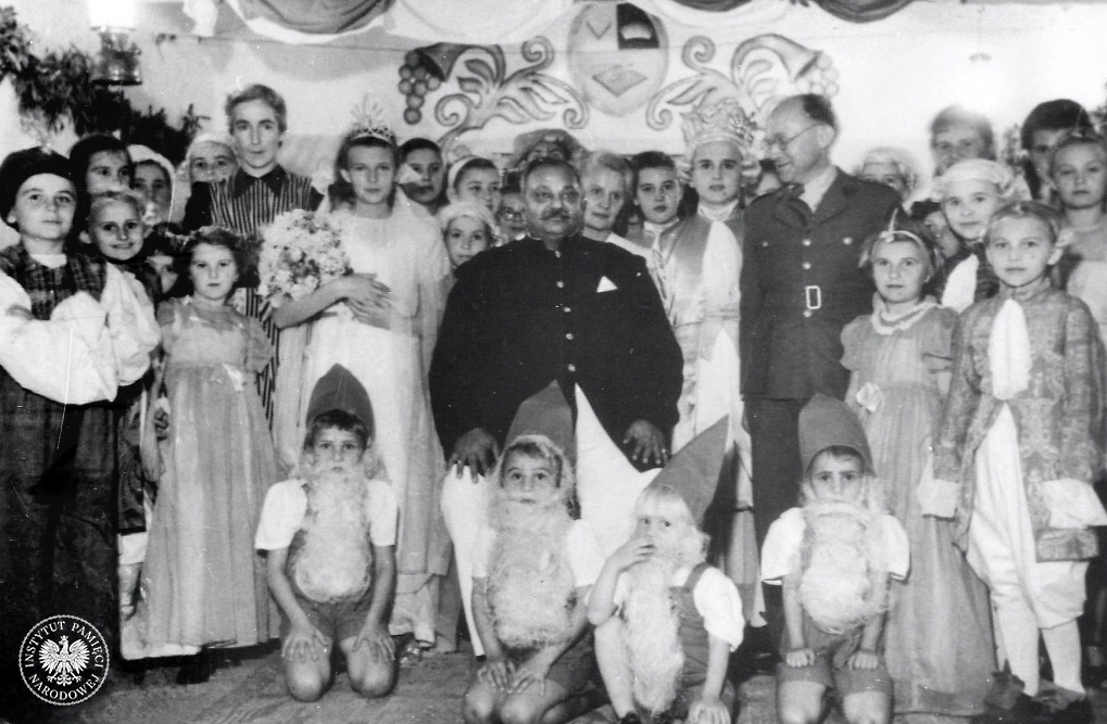Dzieci z maharadżą w czasie przedstawienia. Zdjęcie pochodzące ze znajdującego się w zasobie Archiwum IPN w Warszawie zespołu: Koło Polaków z Indii 1942-1948 (fot. z zasobu IPN, sygn. IPN BU 4042/335)