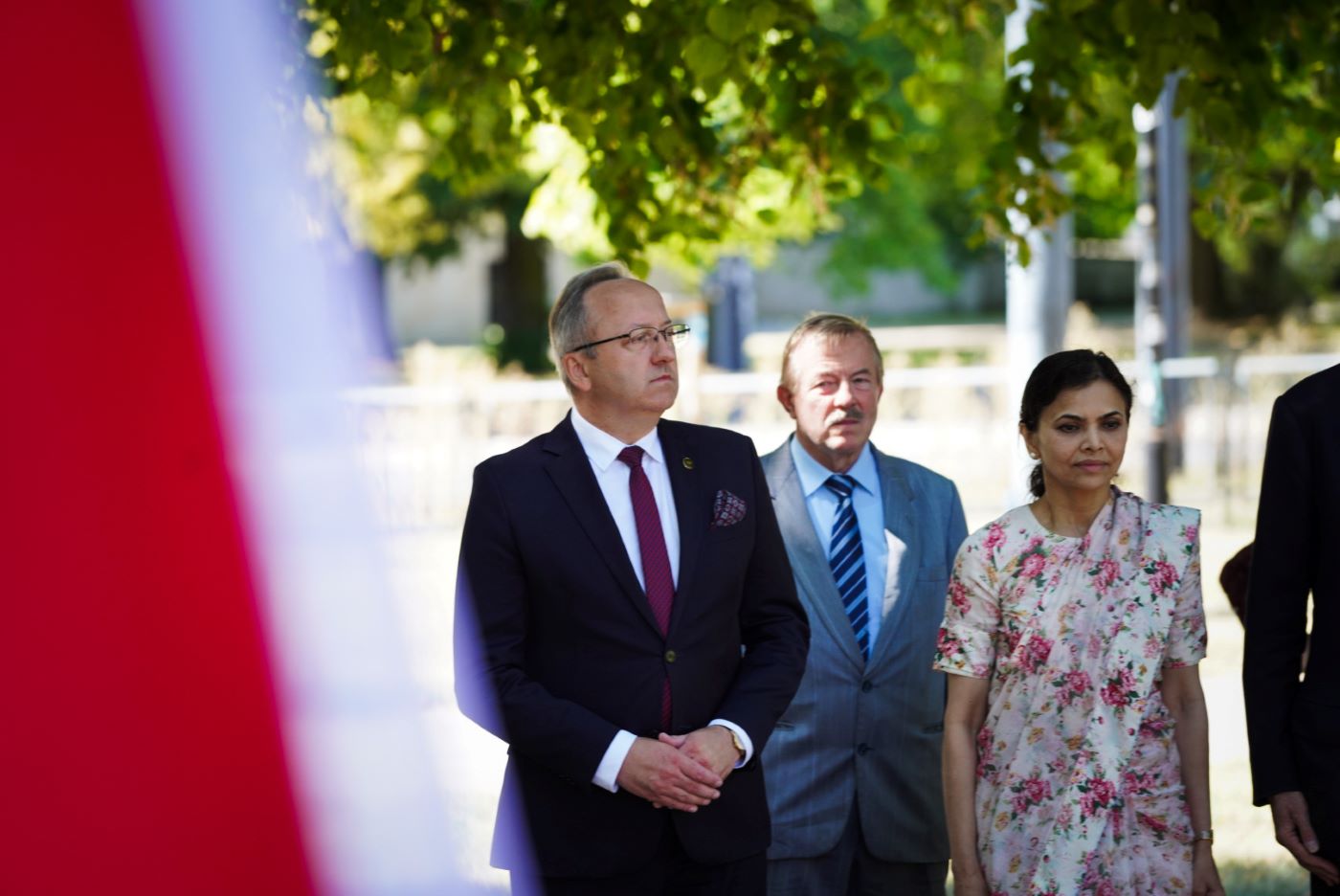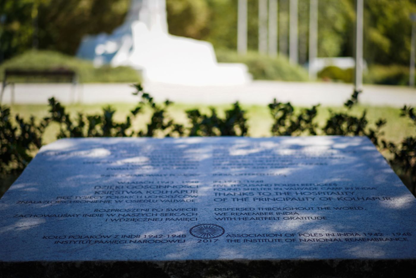 Kwiaty pod tablicą, która jest wyrazem wdzięczności wobec władz i mieszkańców indyjskiego księstwa Kolhapur za udzieloną pomoc polskim uchodźcom z ZSRS, w imieniu IPN złożyli dr hab. Karol Polejowski oraz Adam Siwek, dyrektor Biura Upamiętniania Walk i Męczeństwa IPN.