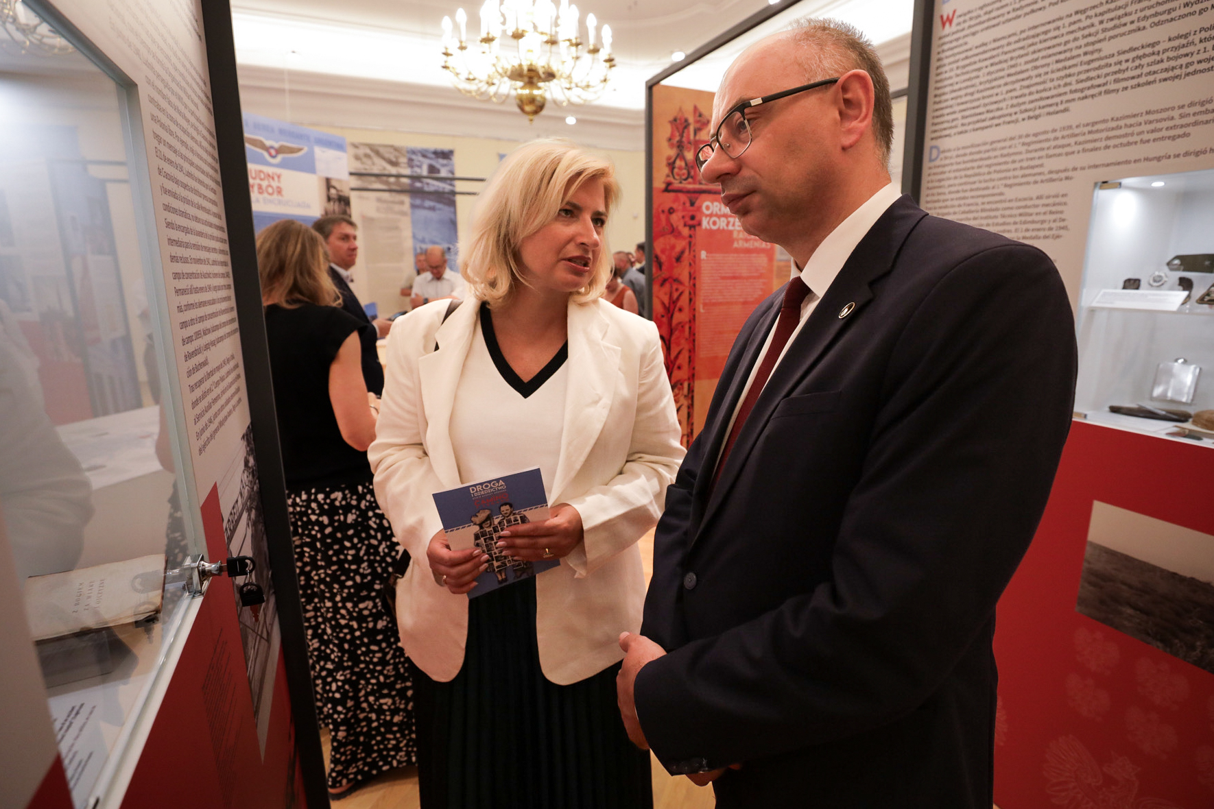 „Droga i dziedzictwo. Dzieje rodziny Moszoro / Camino y Legado. Historia de la Familia Moszoro” – wystawa Archiwum IPN w Muzeum Niepodległości – Warszawa, 4 września 2024. Na zdj. zastępca prezesa IPN dr Mateusz Szpytma i dyrektor Biura Współpracy Międzynarodowej Agnieszka Jędrzak. Fot. Mikołaj Bujak (IPN)